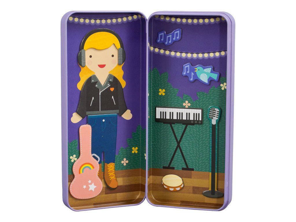 Kreativní. Smělá. Vynalézavá. Použijte magnetické dílky k vytvoření vlastní muzikantky a koncertního pódia. Každý může mít velké sny, které jsou s dostatkem píle splnitelné. Hlavní vlastnosti: Inspiruje mladé umělce, aby si šli za svou vášníObsahuje obrázek mladé muzikantky s magnetickými doplňkyObsahuje dvě koncertní scényDoplňkové parametry