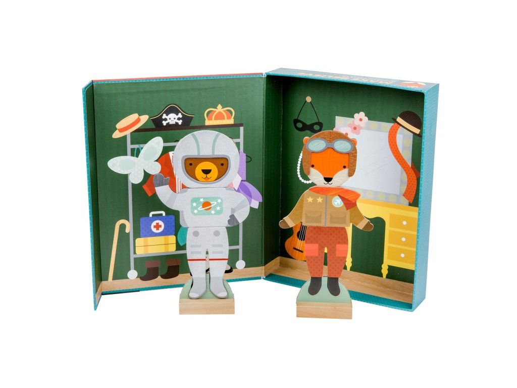 Video je pouze ilustrační, zobrazuje příbuzný produkt. Pomozte zvířátkům s oblékáním! S tímto magnetickým setem můžete spojovat a míchat různé kostýmy. Balení obsahuje 2 magnetické figurky, 2 dřevěné podstavce, 35 magnetických dílků (až 200 různých kostýmů) a pozadí – zkušební kabinku. Hlavní vlastnosti: Rozvíjí koordinaci ruka-oko a představivostSplňuje všechny bezpečnostní normyDoplňkové parametry