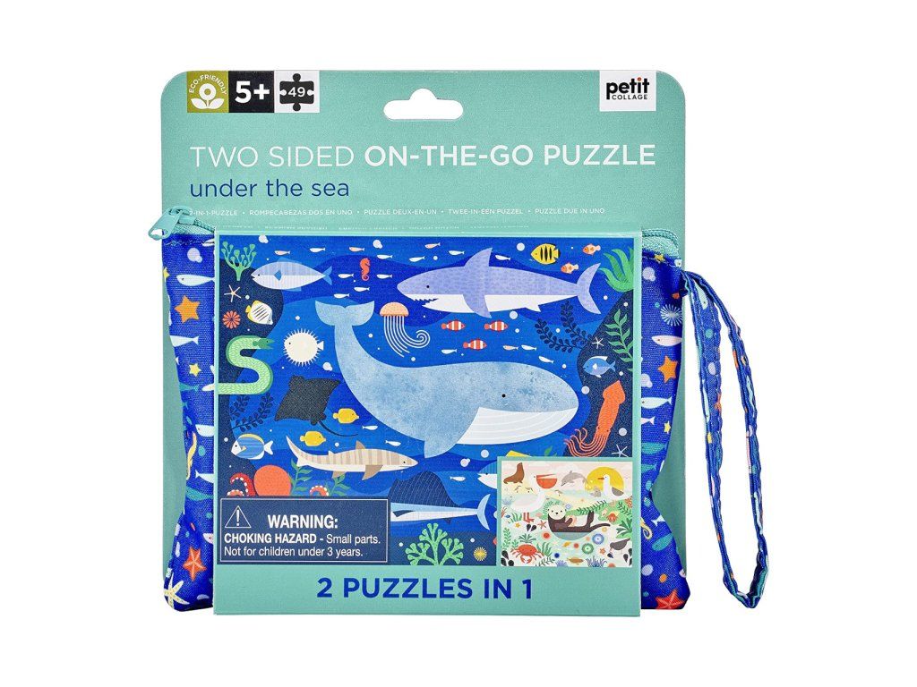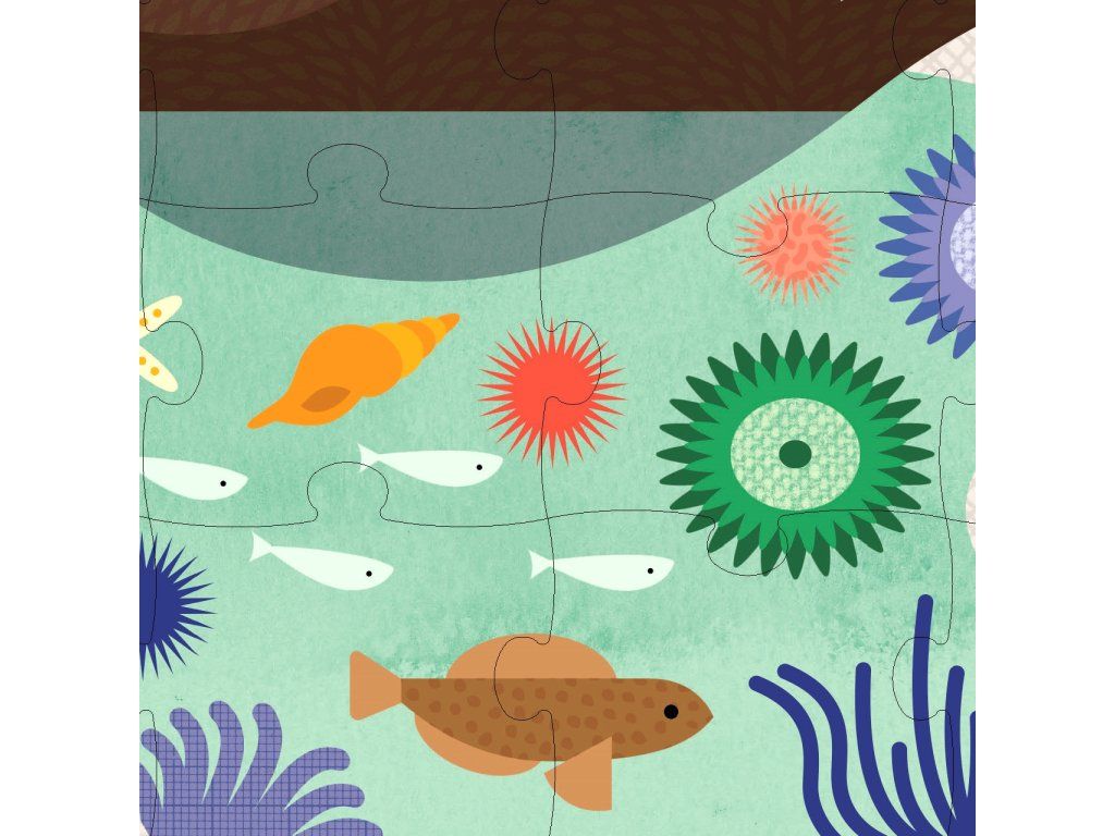Podmořské puzzle má 49 dílků a je oboustranné. Kolik živočichů dokážete rozpoznat? Oboustranné puzzle má 2 unikátní designy, dvojitá zábava! Puzzle je zabaleno v pytlíku s poutkem z látky ze 100% recyklovaného polyesteru. Je tak vhodné i na cesty. Puzzle z FSC papíru je natištěno barvami vyrobenými ze zeleniny. Hlavní vlastnosti: oboustranné puzzlezabaleno v eko pytlíku s poutkempuzzle natištěno přírodními barvamivhodné na doma i na cestybaleno bez použití plastuvhodné od 5 let Značka a certifikát FSC® (Forest Stewardship Council) zaručuje, že dřevo, ze kterého byl produkt vyroben, nebylo vytěženo nelegálně a pochází z lesů obhospodařovaných šetrným či přírodě blízkým způsobem, ve kterém jsou dodržovány přísné environmentální a sociální požadavky. Značka FSC® na výrobku znamená, že svým nákupem pomáháte chránit lesy a podporujete šetrné, odpovědné či přírodě blízké hospodaření, díky kterému jsou naše lesy stabilnější, zdravější, mají přirozenou druhovou skladbu a lépe odolávají negativním následkům klimatických změn.Doplňkové parametry