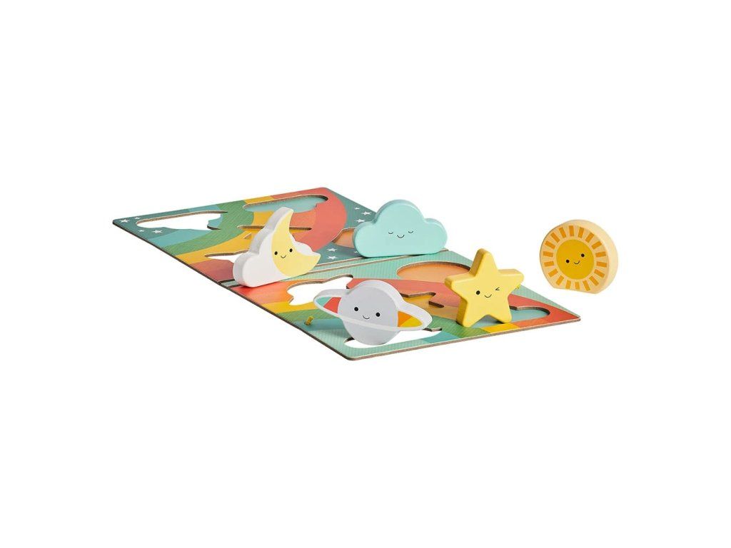 Robustní dřevěné puzzle. Hlavní vlastnosti: 5 dřevěných dílků2 hrací scényVhodné pro děti od 18 měsícůDoplňkové parametry