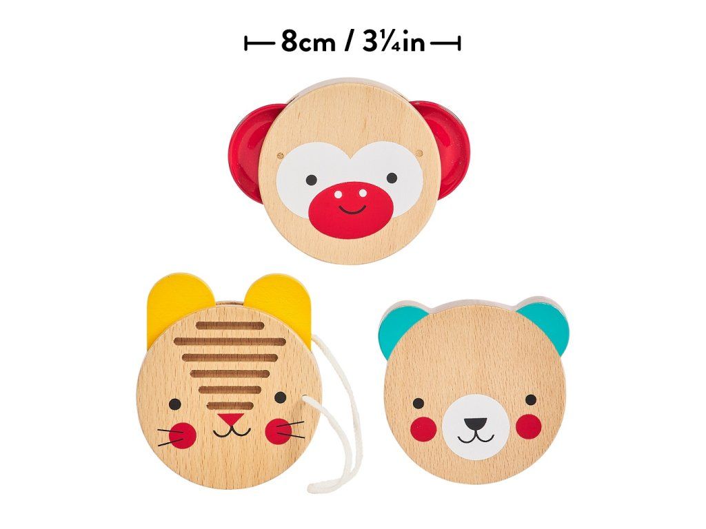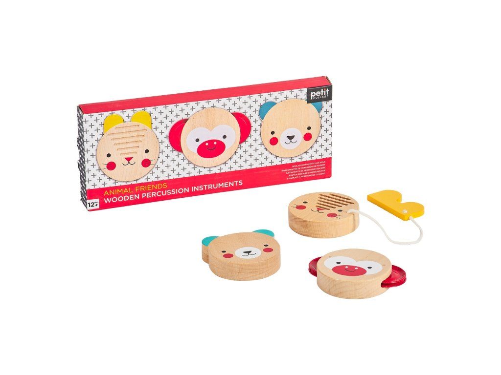 Set perkusních nástrojů je skvělým úvodem do světa hudby. Děti se mohou s opičkou, medvědem a králíčkem naučit rytmu. Obal je recyklovatelný. Hlavní vlastnosti: vše vyrobeno z FSC certifikovaného dřevatrénuje jemnou motoriku, koordinaci ruka-oko, zručnost a poznávací dovednosti Značka a certifikát FSC® (Forest Stewardship Council) zaručuje, že dřevo, ze kterého byl produkt vyroben, nebylo vytěženo nelegálně a pochází z lesů obhospodařovaných šetrným či přírodě blízkým způsobem, ve kterém jsou dodržovány přísné environmentální a sociální požadavky. Značka FSC® na výrobku znamená, že svým nákupem pomáháte chránit lesy a podporujete šetrné, odpovědné či přírodě blízké hospodaření, díky kterému jsou naše lesy stabilnější, zdravější, mají přirozenou druhovou skladbu a lépe odolávají negativním následkům klimatických změn.Doplňkové parametry