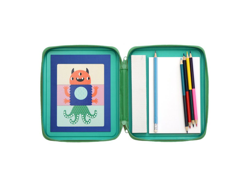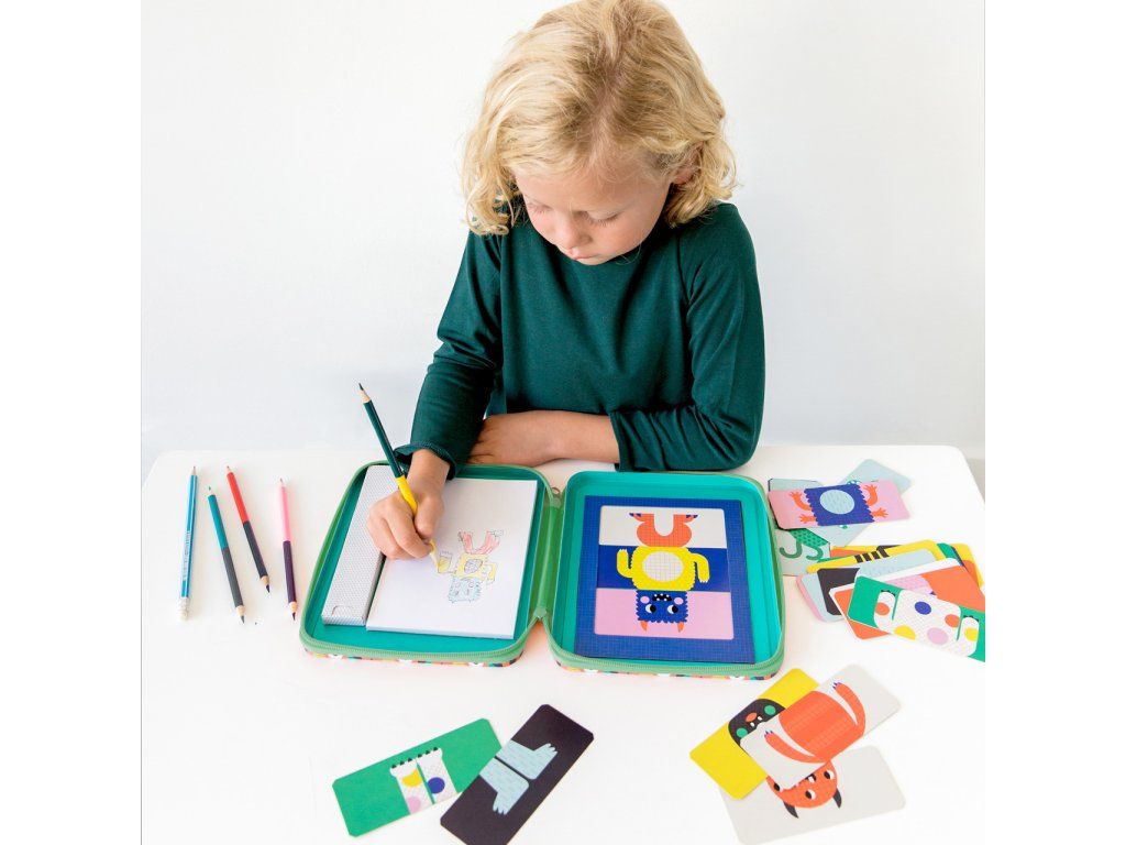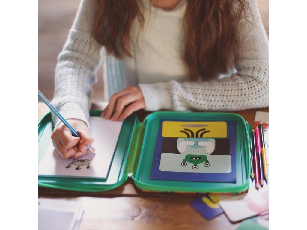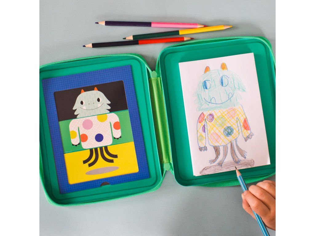 Vytvořte si předlohu a nakreslete příšerku. V balení naleznete 24 kartiček, z kterých si postavíte příšerku dle libosti a poté ji zkusíte nakreslit. Sada je uložena v magnetickém pouzdru. Hlavní vlastnosti: 24 kartičekBlok na kreslení s magnetickou zadní stranouMagnetická tabulka4 dvojité pastelky a tužka č. 2 s gumouPevné pouzdro je uzavíratelné na zipNatištěno rostlinnými barvamiSplňuje a překračuje všechny bezpečnostní normyDoplňkové parametry