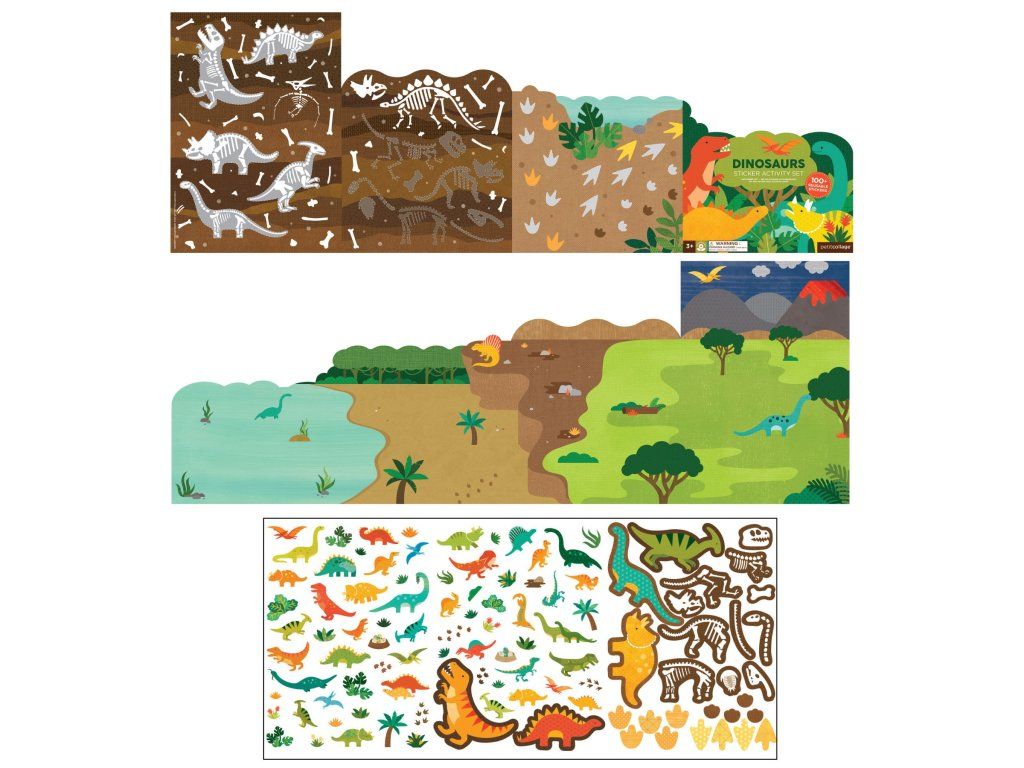 Petit Collage Znovupoužitelné samolepky se scénou Dinosauři