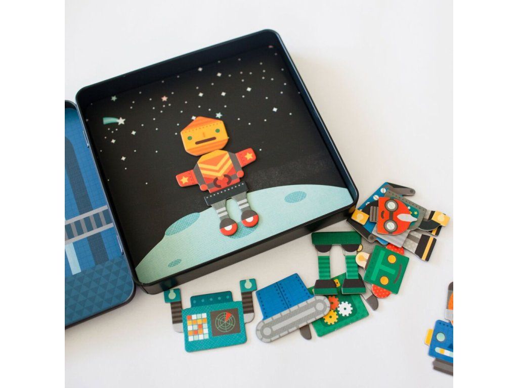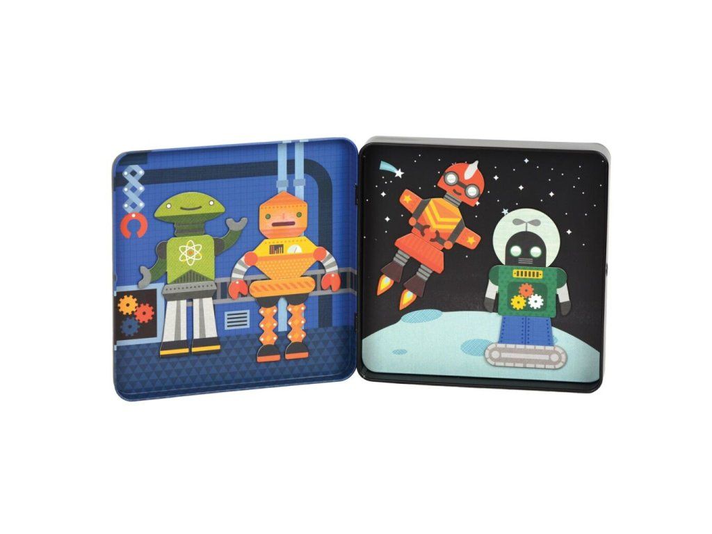 Petitcollage Magnetická hra Roboti - poškozená kovová krabička