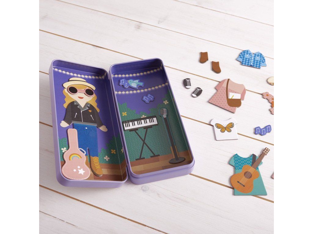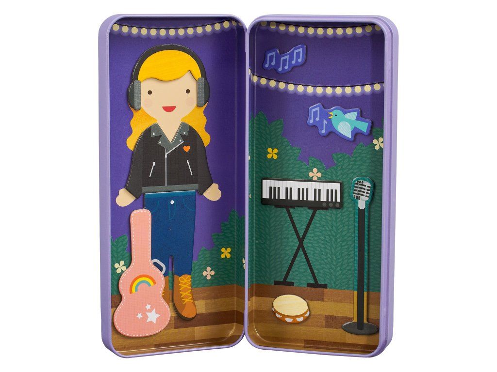 Poškozená kovová krabička. Kreativní. Smělá. Vynalézavá. Použijte magnetické dílky k vytvoření vlastní muzikantky a koncertního pódia. Každý může mít velké sny, které jsou s dostatkem píle splnitelné. Hlavní vlastnosti: Inspiruje mladé umělce, aby si šli za svou vášníObsahuje obrázek mladé muzikantky s magnetickými doplňkyObsahuje dvě koncertní scényDoplňkové parametry