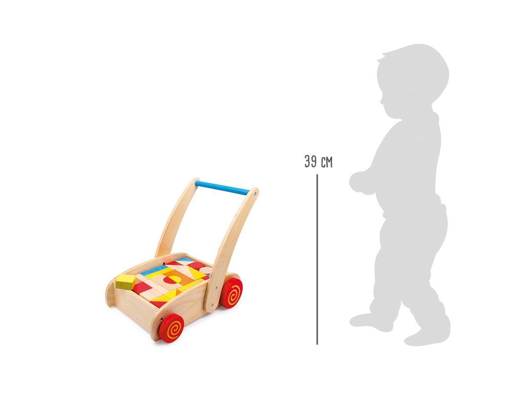 Toto stabilní chodítko je vyrobeno z masivního dřeva a překližky. Různě tvarované kostky (5 cm až 10 cm) jsou vyrobeny z bukového dřeva. Trénuje smysl pro rovnováhu a poskytuje hravou podporu při učení chůze. Rozvíjí motoriku, rozpoznávání barev barev a tvarů. Hrany jsou hladké, zaoblené pro větší bezpečnost. Hlavní vlastnosti: rozvíjí motorikutrénuje smysl pro rovnováhu a rozpoznávání barev a tvarůposkytuje hravou podporu při učení chůzeDoplňkové parametry