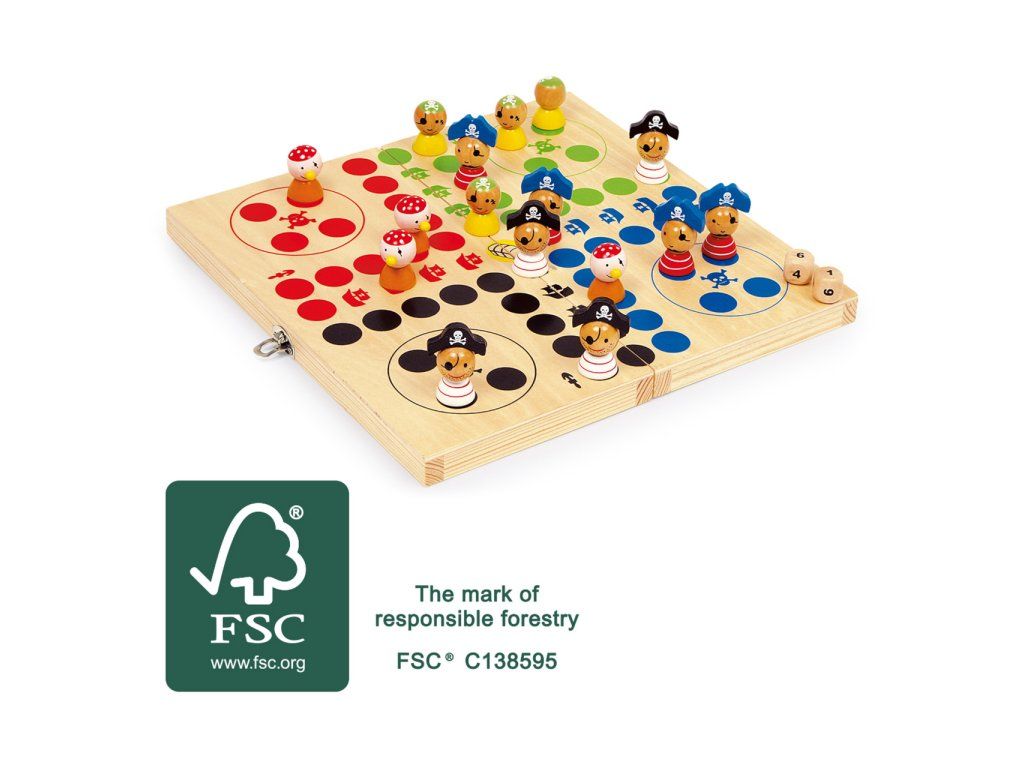 Další kreativní design pro jednu z nejúžasnějších her, navíc v dřevěné krabici. Legrační malovaní piráti soutěží s nepřátelskými týmy! Balení včetně kostky. Hlavní vlastnosti: rozvíjí logické myšlení dětípodporuje zvídavostvyrobeno z 100% FSC dřeva Značka a certifikát FSC® (Forest Stewardship Council) zaručuje, že dřevo, ze kterého byl produkt vyroben, nebylo vytěženo nelegálně a pochází z lesů obhospodařovaných šetrným či přírodě blízkým způsobem, ve kterém jsou dodržovány přísné environmentální a sociální požadavky. Značka FSC® na výrobku znamená, že svým nákupem pomáháte chránit lesy a podporujete šetrné, odpovědné či přírodě blízké hospodaření, díky kterému jsou naše lesy stabilnější, zdravější, mají přirozenou druhovou skladbu a lépe odolávají negativním následkům klimatických změn.Doplňkové parametry