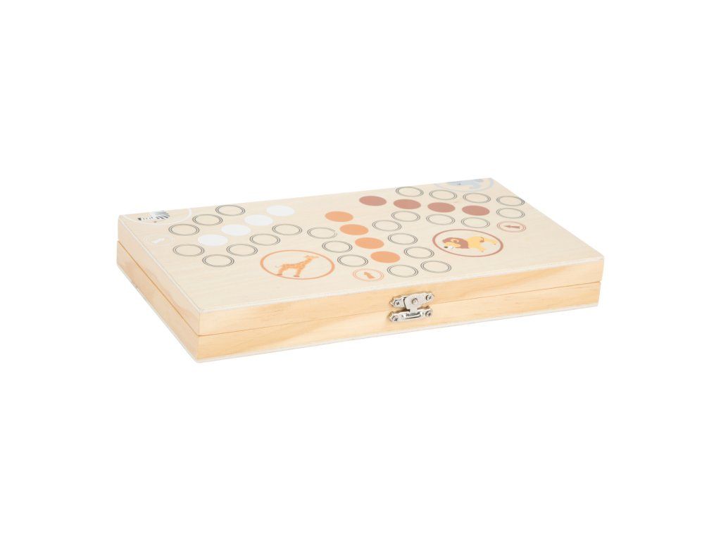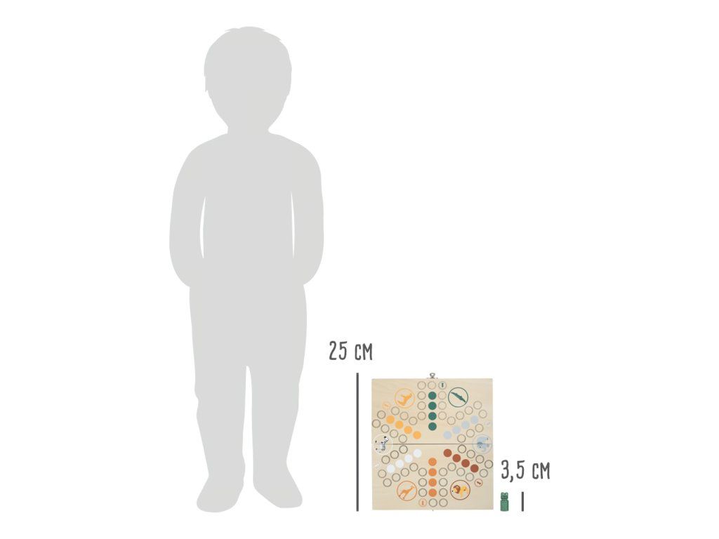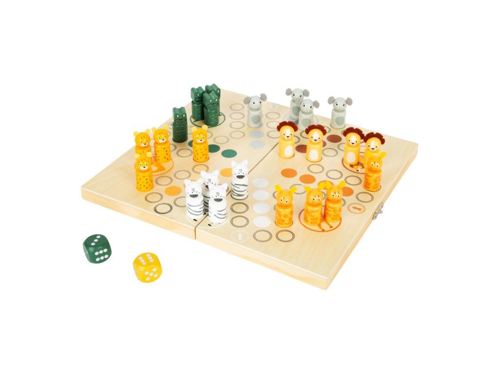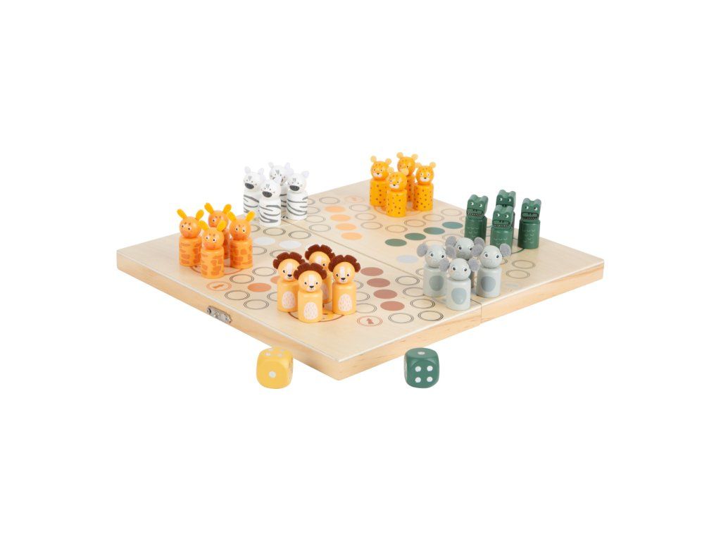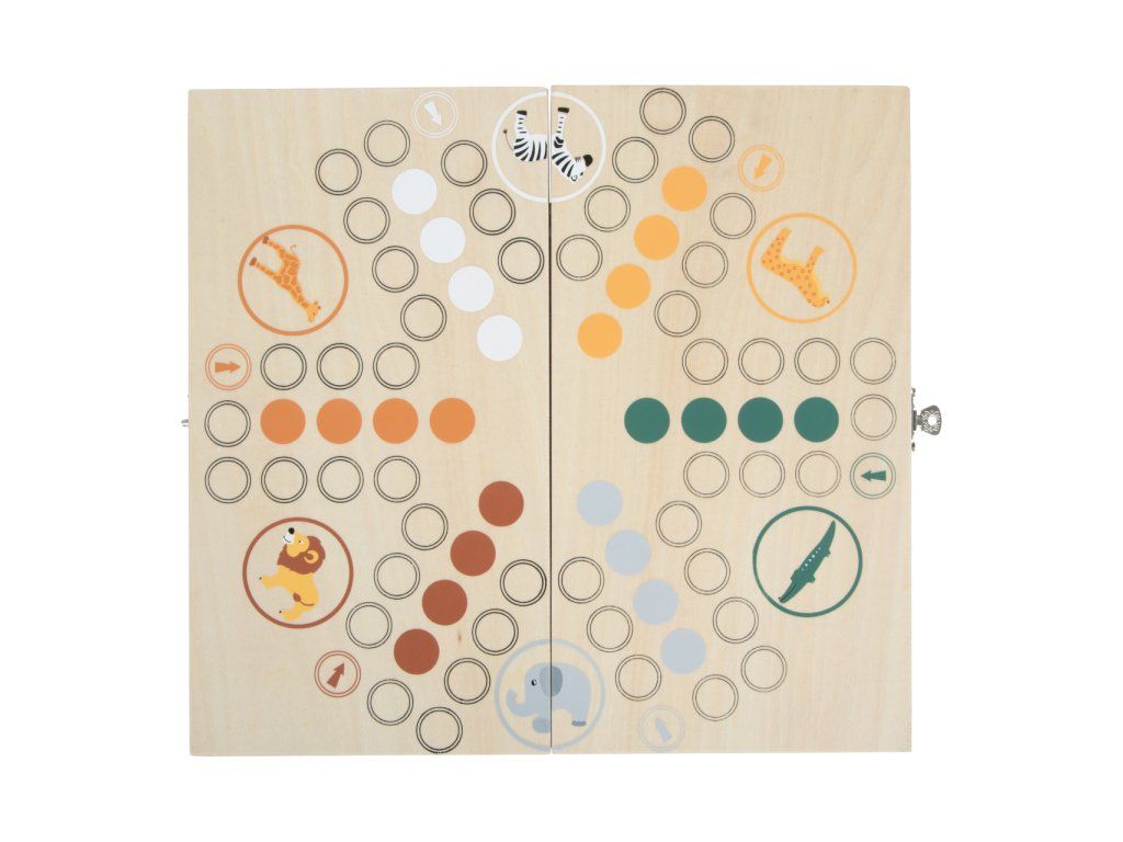 Skvělá zábava až pro 6 hráčů každého věku! V této klasické hře vyrobené ze dřeva musíte dostat svá zvířátka ze savany do domečku. Zebra, žirafa, krokodýl, slon, leopard a lev vypadají skoro jako praví. Tyto figurky jsou vhodné pro děti, jsou dřevěné a mají plyšové prvky. Herní deska je praktická, po složení se z ní opět stane úložný box. Dvě herní kostky vám ukáží, o kolik polí se můžete posunout. Klasická stolní hra v trendy designu, která děti naučí počítat, poznávat barvy a zvířata. Děti se také naučí prohrávat. Ideální také na cesty. Hlavní vlastnosti: pro 2–6 hráčůherní deska, 24 figurek a 2 kostkypraktické baleníDoplňkové parametry