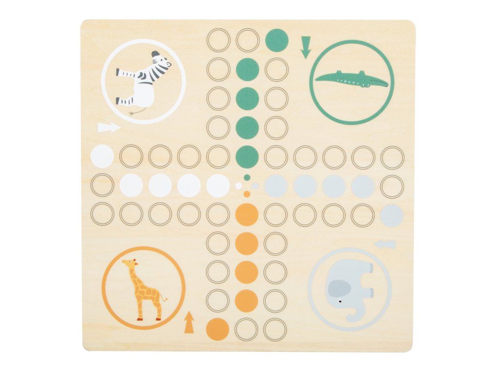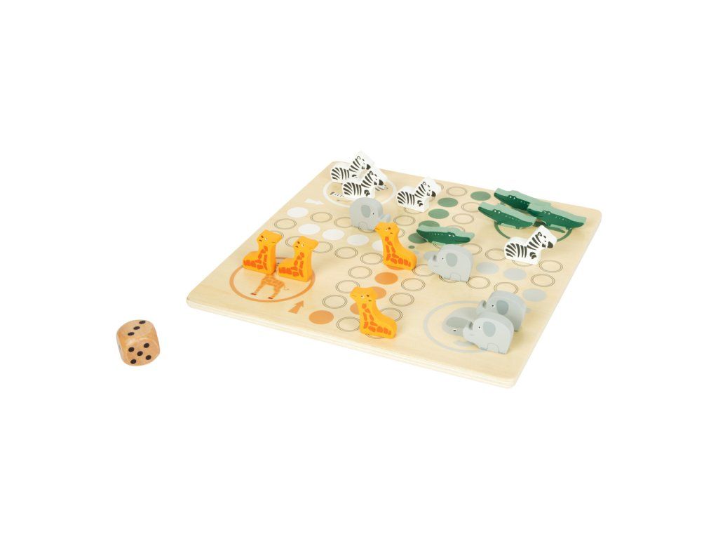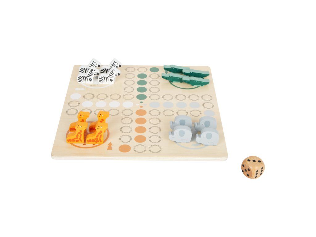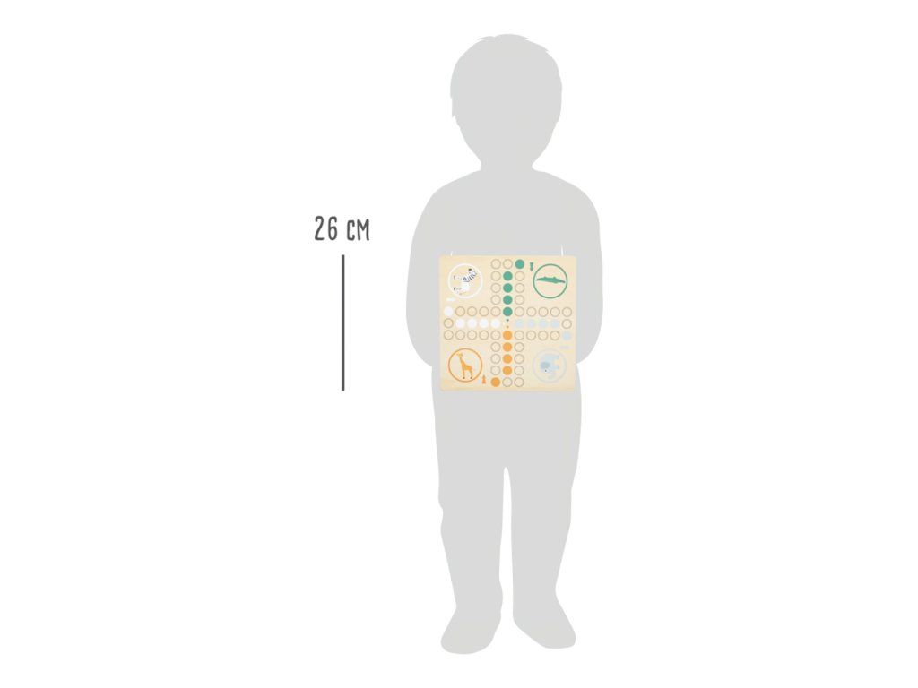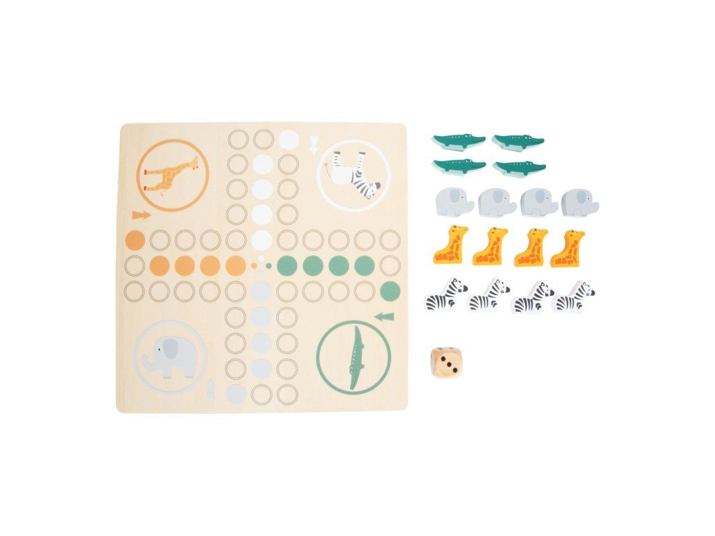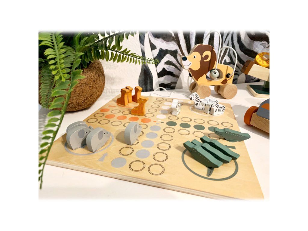 Safari přímo u vás doma. Toto dřevěné Člověče má figurky zebry, slona, žirafy a krokodýla. Cílem je dostat všechny figurky do domečku. Extra velká kostka vám ukáže, o kolik polí se můžete posunout. Klasická stolní hra v trendy designu, která děti naučí počítat, poznávat barvy a zvířata. Děti se také naučí prohrávat. Hlavní vlastnosti: vhodné pro 2-4 hráčeherní deska, 16 figurek zvířátek a kostkapestrobarevné provedeníDoplňkové parametry
