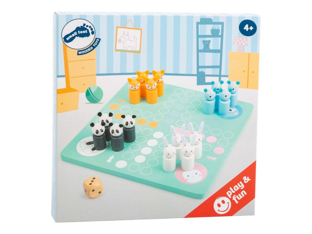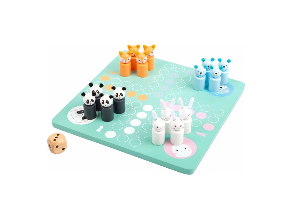 Které zvířátko se jako první dostane do svého domečku? Vyzkoušejte šikovnou hru v pastelových barvách s dřevěnými figurkami ve tvaru zajíce, pandy, medvěda a lišky. Hod kostkou udává, kolik kroků může daná figurka udělat. Vzrušující kompaktní společenská hra v moderních barvách. Hlavní vlastnosti: rozvíjí logické myšlení dětíklasická hra vyrobena ze dřeva v moderním designuideální společník na cestáchDoplňkové parametry