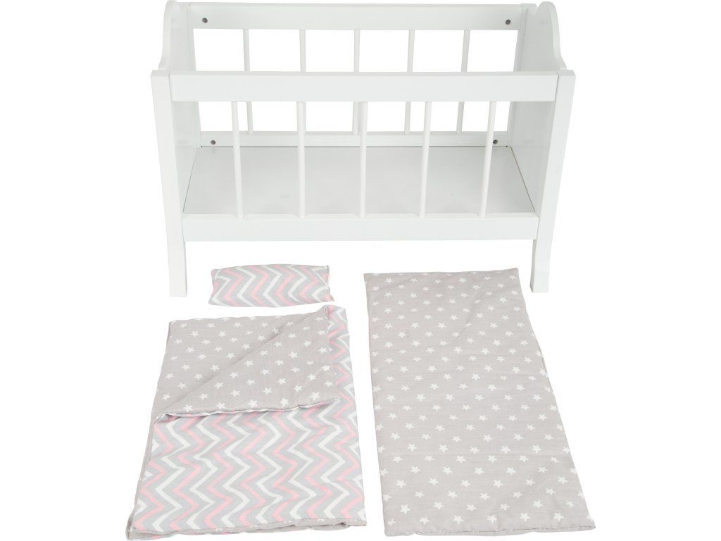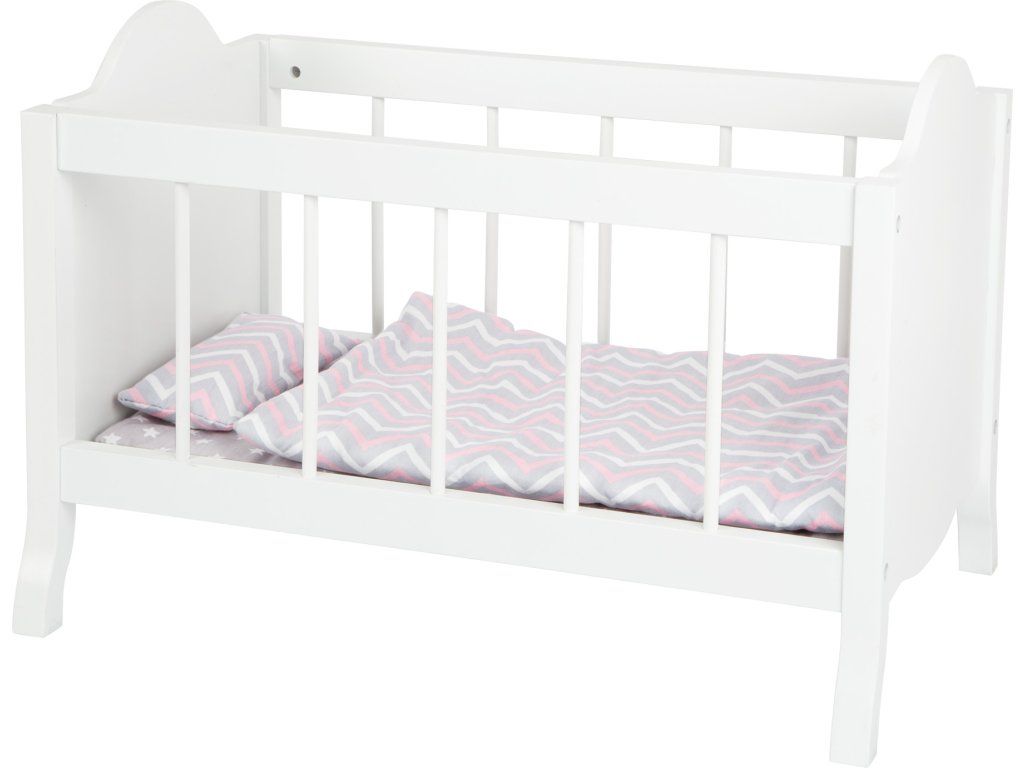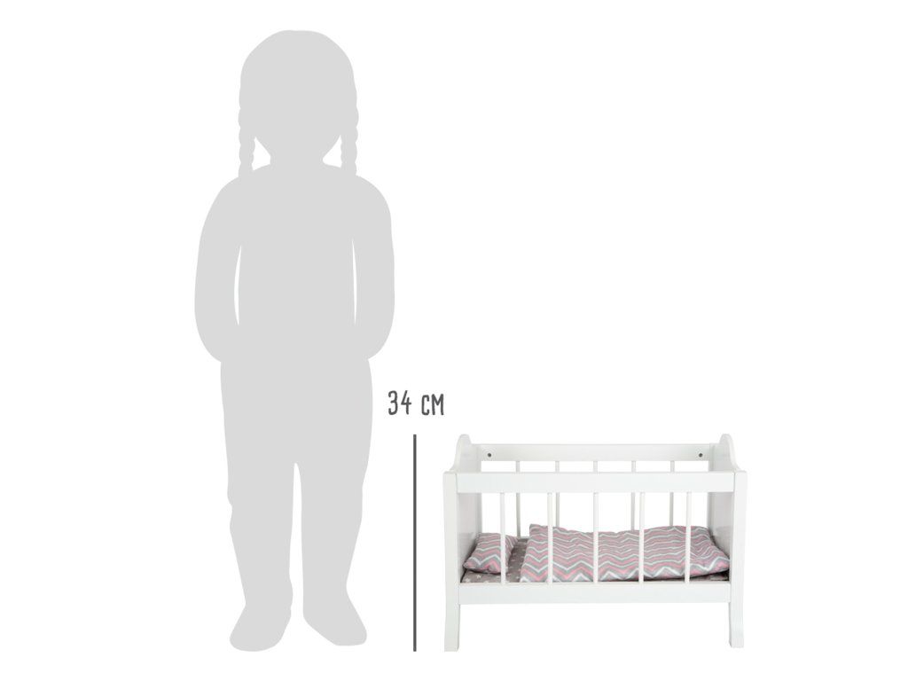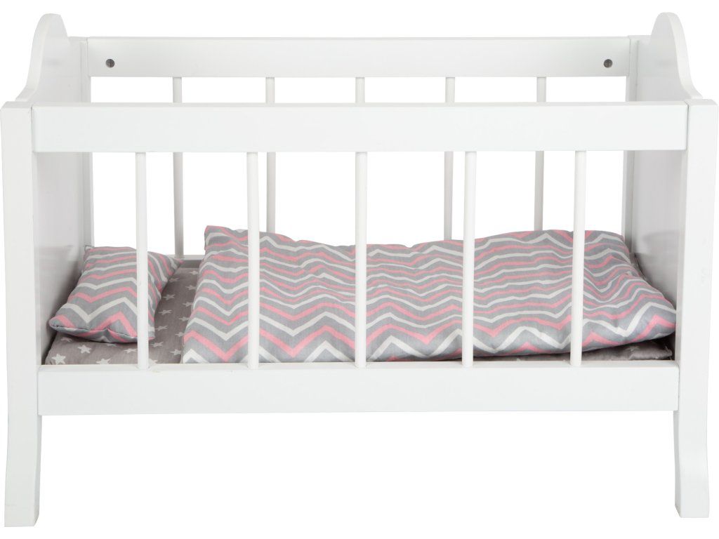 Panenky a plyšové hračky se v této krásné postýlce vyspí obzvláště dobře, protože díky zábranám nevypadnou. V bílé barvě vypadá postel pro panenky z masivního dřeva velmi moderně. Design perfektně završuje oboustranné ložní prádlo, které je součástí balení. Hlavní vlastnosti: vyrobeno z masivního dřevaideální doplněk k sortimentu nábytku pro panenkyskvělá postýlka pro panenky do 47 cmDoplňkové parametry