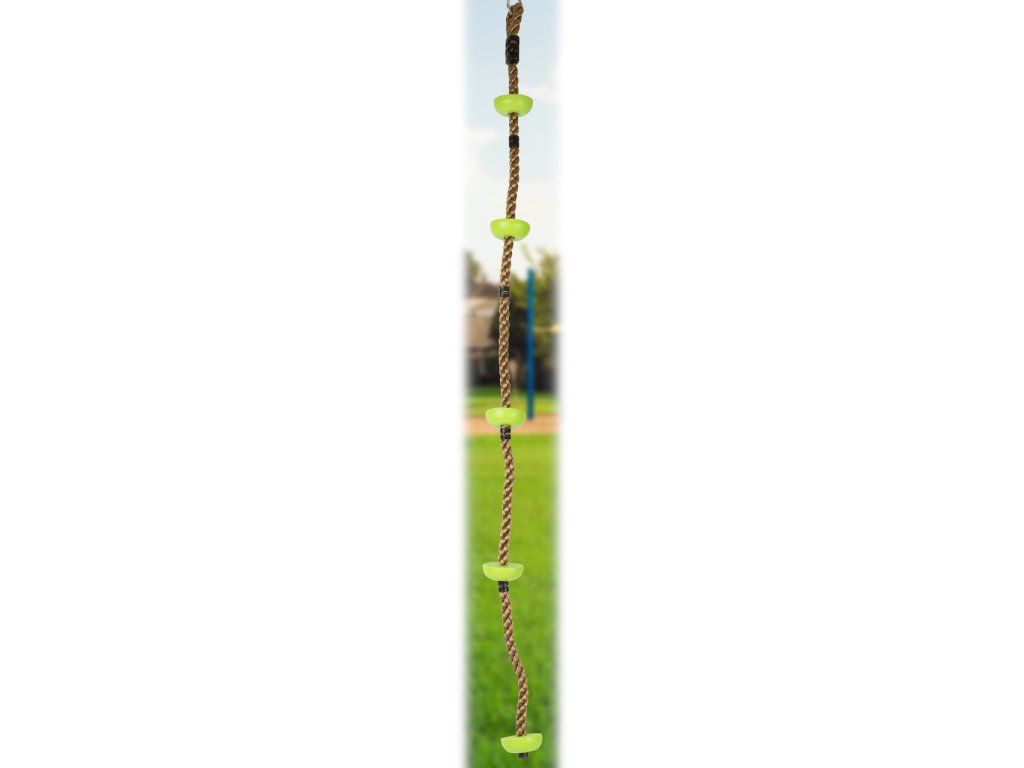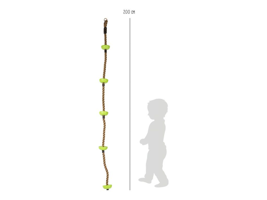 Kdo vyšplhá až po nejvyšší stupínek? Lezecké lano se neztratí na žádné zahradě! Jeho prostřednictvím mohou Vaše malé opičky cvičit a poměřovat svou sílu i hbitost. Nylonové lano je velmi poddajné, a lze je proto snadno uklidit. Na konci je opatřeno kovovým kroužkem k zavěšení. Stupínky z nezávadného plastu v atraktivní barvě pomáhají dětem začít se šplhem. Díky použitým materiálům může pomůcka nabídnout vysokou odolnost a životnost. Hlavní vlastnosti:délka 200 cm, 5 stupínkůnosnost 100 kgodolné provedeníDoplňkové parametry