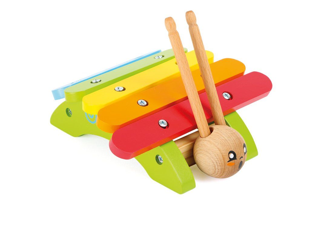 Hrátky plné zvuků přináší tento malý šnek se svými 5 ladícími dřívky. Šnečí tykadla (14 cm) slouží jako paličky. Dětské ručičky jsou stejně fascinované jako oči a uši. Hlavní vlastnosti: xylofon a 2 paličkyrobustní dřevěné provedeníprohlubuje lásku k hudbě a rytmikuvelikost pro nejmenšíDoplňkové parametry