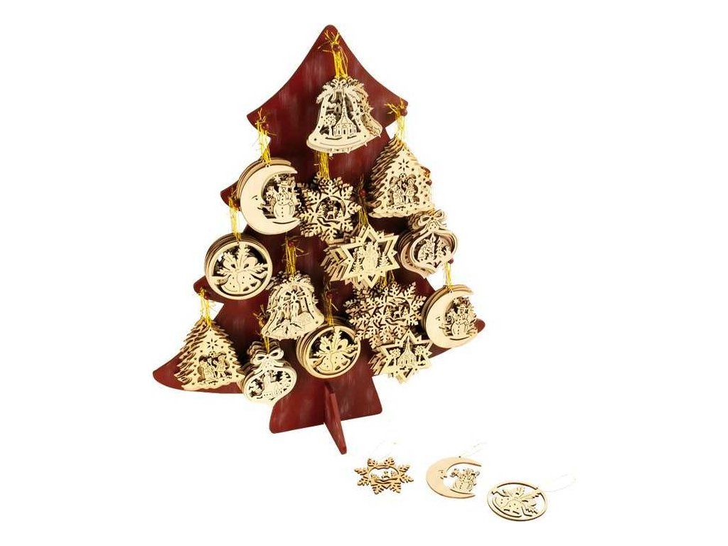 Skvělá dekorace pro každý vánoční stromeček. 168 ozdob na zavěsení okouzlí se svými jemnými výřezy každý obývací pokoj. Ozdoby jsou zavěseny na displeji ve tvaru vánočního stromečku ze dřeva, což umožňuje perfektní prezentaci v každém obchodě. Hlavní vlastnosti: ideálně zahájeno vánoční obdobídrobné,jemně vyřezávané detailyvytváří kouzelnou adventní atmosféruDoplňkové parametry
