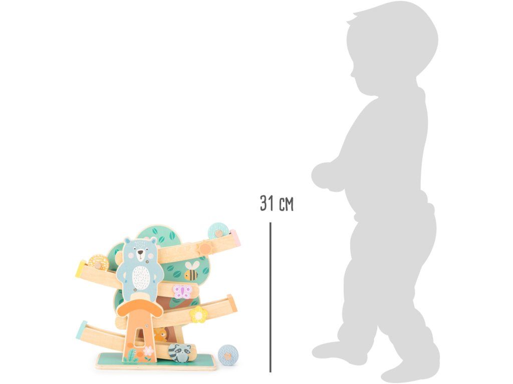 Rychlý sestup kouzelným lesem? Na této robustní dráze v pastelových tónech se po svahu zdobeném lesními obyvateli rozběhnou tři různá barevná dřevěná kola zdobená moderními vzory. Obzvláště stabilní se širokou základnou. Hlavní vlastnosti: dřevěná hračkapastelové barvyrozvíjí zručnost dětíDoplňkové parametry