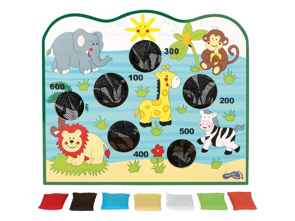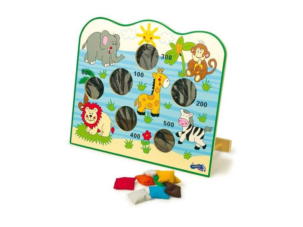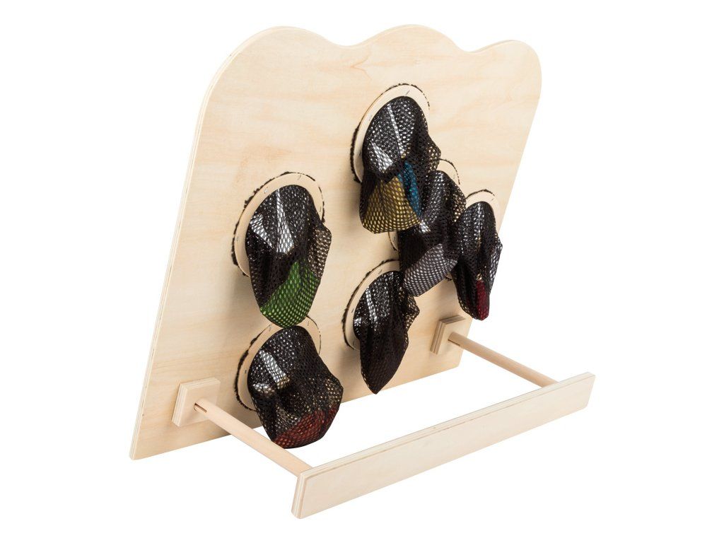 Barevná hra na házení do otvorů se síťkou malými barevnými pytlíčky. Otvory se liší velikostí a čím menší je otvor, tím těžší je se trefit. Ale počet bodů motivuje - zkuste to! Tato hra zabírá málo místa a je ideální pro hraní v místnosti! Hlavní vlastnosti: procvičuje koordinaci ruka-oko a motorikuDoplňkové parametry