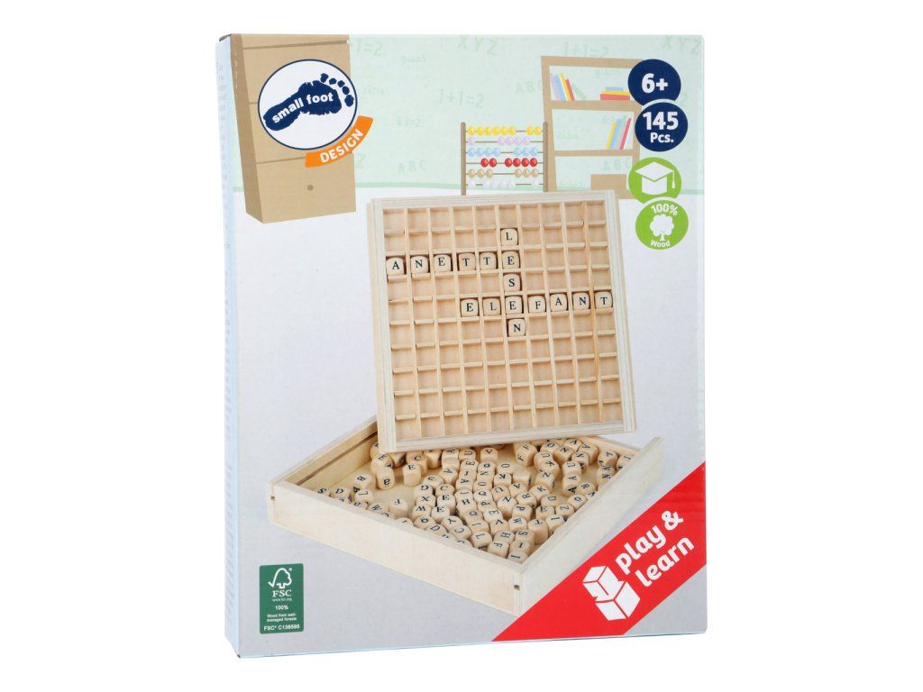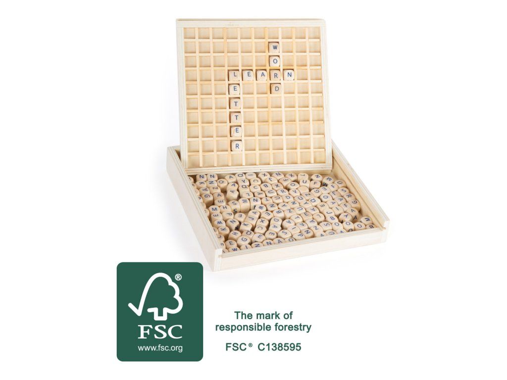 S touto hrou na principu známé hry Scrabble vytvořené ze 100% certifikovaného FSC® dřeva si děti mohou potrénovat slovní zásobu. Herní deska má připravená okýnka, do kterých kameny vložíte, ty tak budou držet na místě. Dílky po skončení hry můžete uložit do dřevěného boxu, hra se hodí i na cesty. Produkt odpovídá vyobrazení. Hlavní vlastnosti: Obsahuje 145 dílků písmenPraktický uzavíratelný box vhodný i na cestyRozvíjí slovní zásobu a učí pravopis Značka a certifikát FSC® (Forest Stewardship Council) zaručuje, že dřevo, ze kterého byl produkt vyroben, nebylo vytěženo nelegálně a pochází z lesů obhospodařovaných šetrným či přírodě blízkým způsobem, ve kterém jsou dodržovány přísné environmentální a sociální požadavky. Značka FSC® na výrobku znamená, že svým nákupem pomáháte chránit lesy a podporujete šetrné, odpovědné či přírodě blízké hospodaření, díky kterému jsou naše lesy stabilnější, zdravější, mají přirozenou druhovou skladbu a lépe odolávají negativním následkům klimatických změn.Doplňkové parametry
