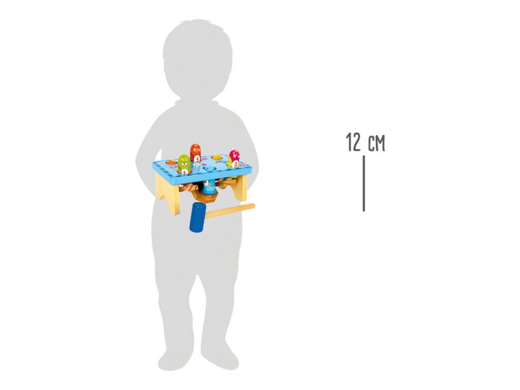 Barevná zatloukací hra z masivního dřeva a překližky. Všeteční ptáci se na jedné straně zatloukají a na druhé už zase vykukují. Zábavný a hravý způsob, jak trénovat motoriku. Hlavní vlastnosti: dřevěná hračkatrénuje motoriku dětíDoplňkové parametry