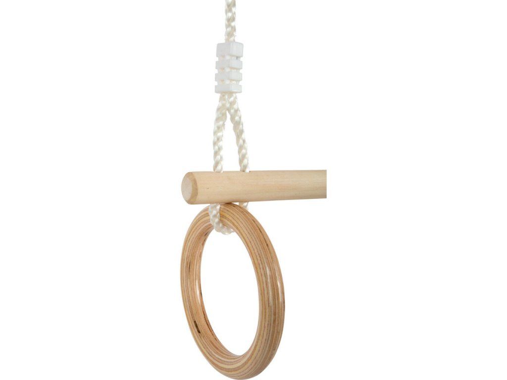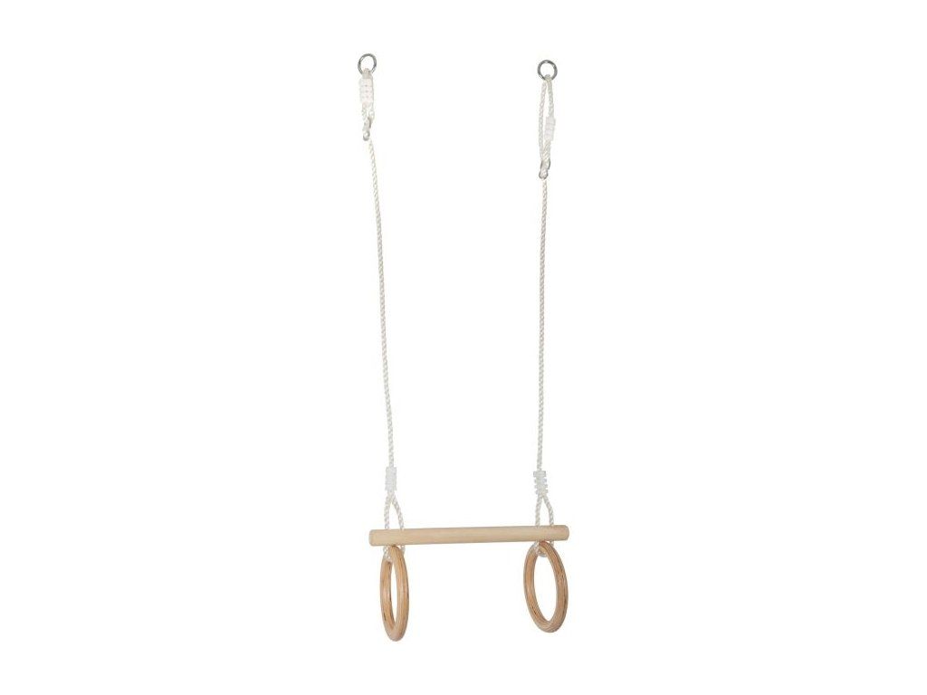 Houpání, gymnastika, akrobacie... Cokoliv z toho můžete vyzkoušet na této kombinované visuté hrazdě s gymnastickými kruhy z pevného dřeva. Díky visuté hrazdě se nemění pozice kruhů. S touto pomůckou si mohou mladí gymnasté, gymnastky, akrobaté a akrobatky nacvičit ovládání těla, sílu, zručnost a zároveň si užít mnoho zábavy. Hlavní vlastnosti nastavitelná délka lanvisutá hrazda upevňuje pozici kruhůz robustního dřevaDoplňkové parametry