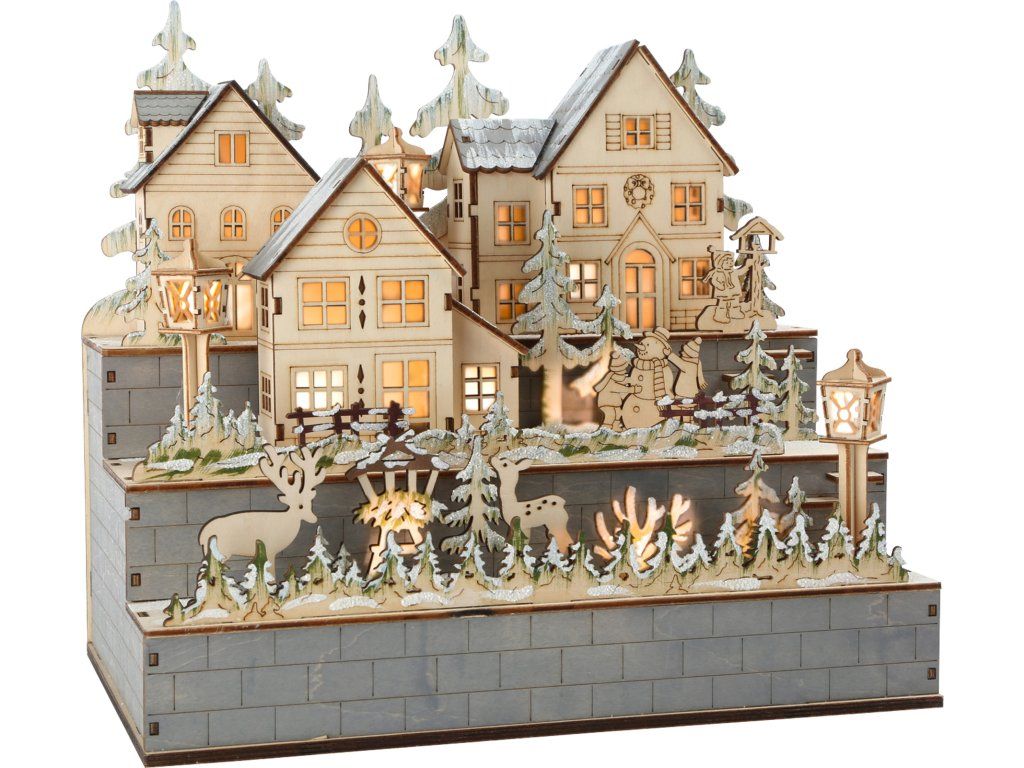small foot Dřevěná lampa zimní vesnice