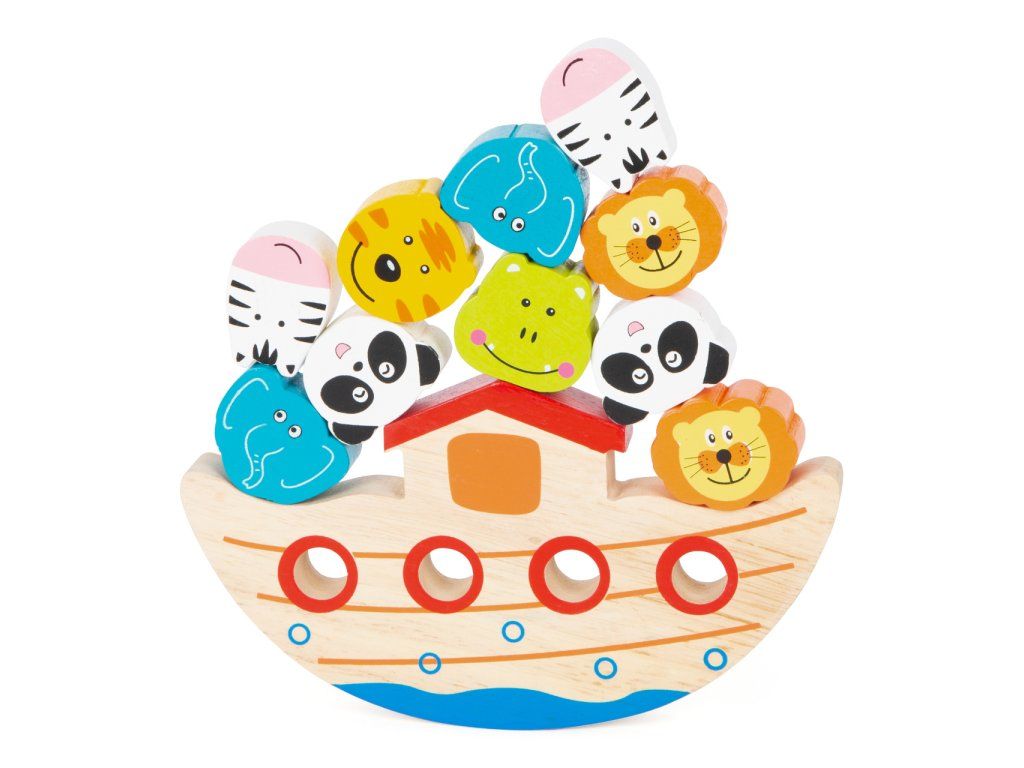 Při této hře musí být na sebe zvířata stavěna tak, aby archa nebyla vyvedena z rovnováhy a pasažéři nespadli dolů. Krásná hra na zkoušku šikovnosti z barevně lakovaného dřeva, pro trénink jemné motoriky a trpělivosti. Malá kostka určuje symboly, které zvířátko má být postaveno na archu. Lze však hrát i bez kostky, aby se tak snížila obtížnost hry. Hlavní vlastnosti: dětská dovednostní hra ze dřeva pro celou rodinu12 zvířat, archa a hrací kostkavysoce kvalitní zpracováníprocvičuje soustředění, jemnou motoriku a zručnostDoplňkové parametry