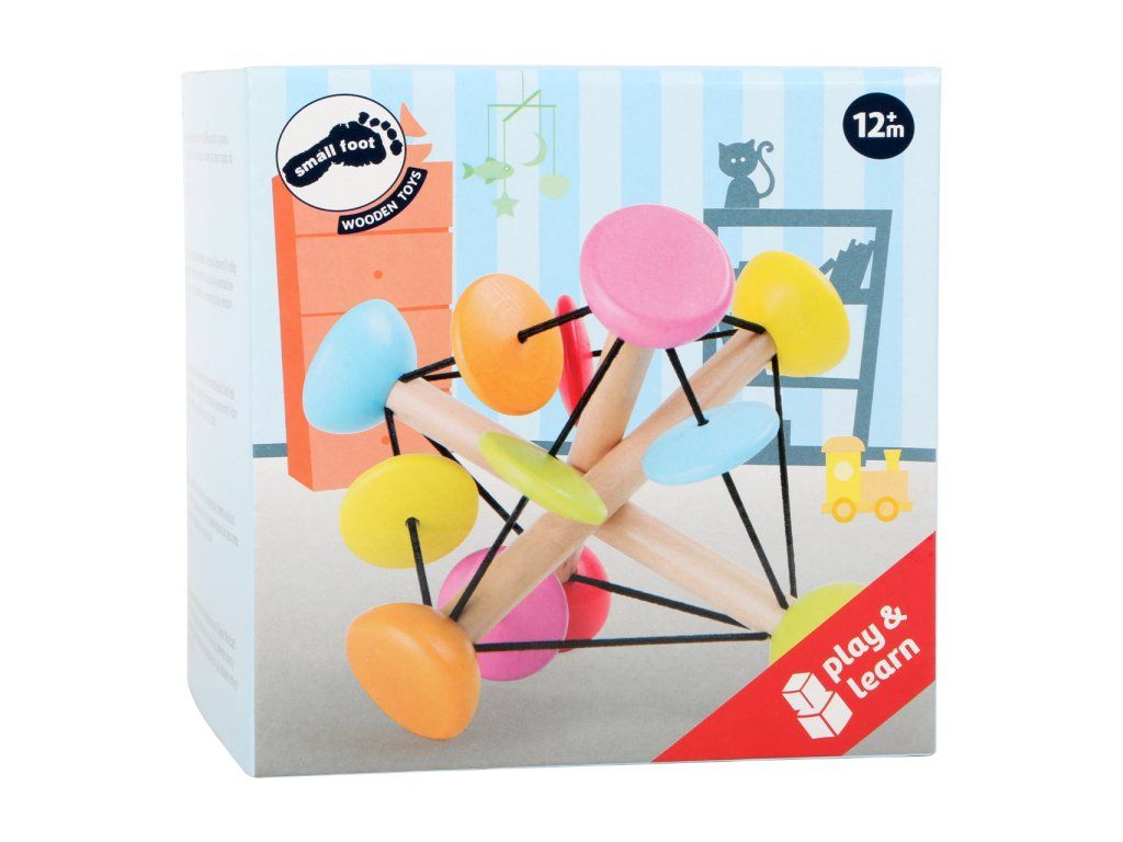Tři dřevěné tyčky jsou spojeny gumičkami. Jsou vysoce flexibilní a lze je libovolně otáčet. Je to skutečná sportovní výzva pro malé ručičky. Barevné posuvné prvky při pohybu chrastí. Hlavní vlastnosti: barevný designvyrobeno v Německu z kvalitních a zodpovědně získaných materiálůDoplňkové parametry