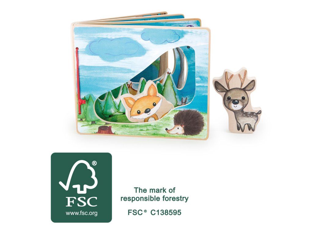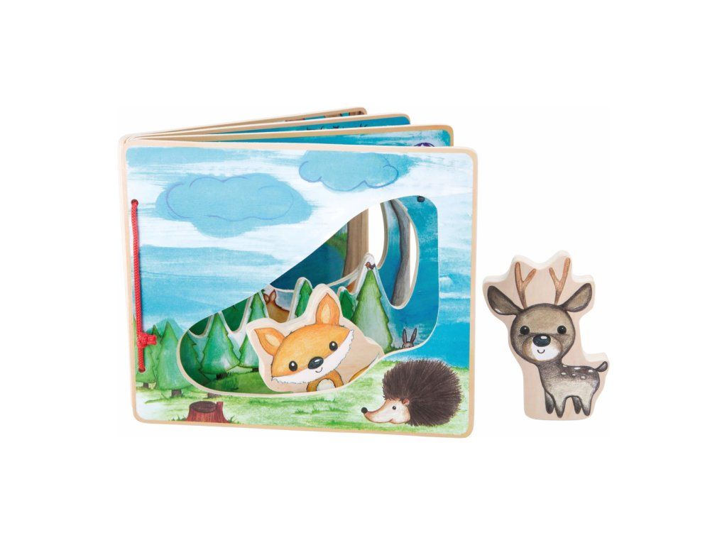 S obrázkovou knihou se ponoříte do hlubokého lesa. Malé průzkumníky budou na výpravě knihou doprovázet liška a jelen, pomohou hravě objevovat flóru i faunu. Kniha podněcuje fantazii a umožňuje prožít dobrodružství. Dvojici lesních zvířecích průvodců lze pro bezpečnou přepravu připevnit na zadní stranu knihy pomocí suchých zipů. Vyrobeno ze 100% certifikovaného dřeva FSC®. Hlavní vlastnosti:kniha a 2 figurkyvyrobeno ze 100% FSC® dřeva Značka a certifikát FSC® (Forest Stewardship Council) zaručuje, že dřevo, ze kterého byl produkt vyroben, nebylo vytěženo nelegálně a pochází z lesů obhospodařovaných šetrným či přírodě blízkým způsobem, ve kterém jsou dodržovány přísné environmentální a sociální požadavky. Značka FSC® na výrobku znamená, že svým nákupem pomáháte chránit lesy a podporujete šetrné, odpovědné či přírodě blízké hospodaření, díky kterému jsou naše lesy stabilnější, zdravější, mají přirozenou druhovou skladbu a lépe odolávají negativním následkům klimatických změn.Doplňkové parametry
