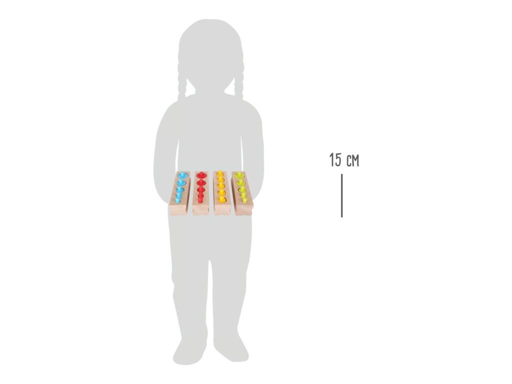 Tato pestrobarevná logická hra povzbuzuje děti k porovnávání, organizaci, počítání, měření a strukturování. Tato hračka z masivního dřeva se vyznačuje svou jednoduchostí a zřetelností. Procvičuje jemnou motoriku a pomáhá dětem v rozvoji jejich vnímání, inteligence a osobnosti. "Pomozte mi to udělat sám!" je přesně to, co doporučuje Montessori pedagogika! Hlavní vlastnosti: rozvíjí logické myšlenídřevěná hračkaDoplňkové parametry