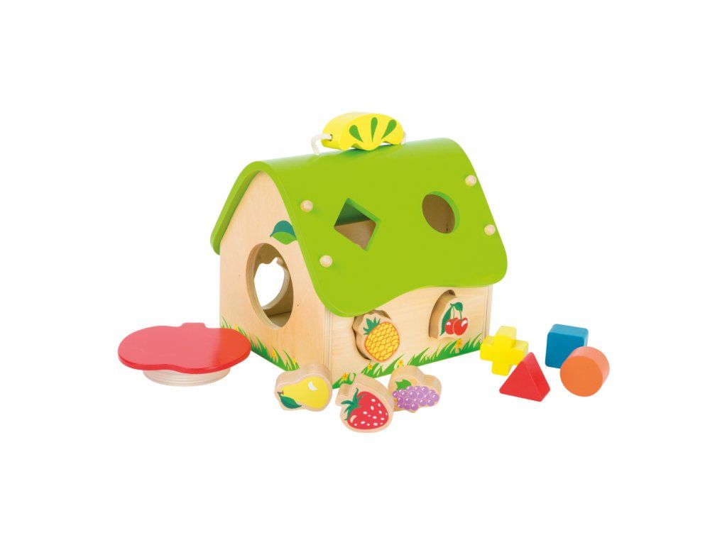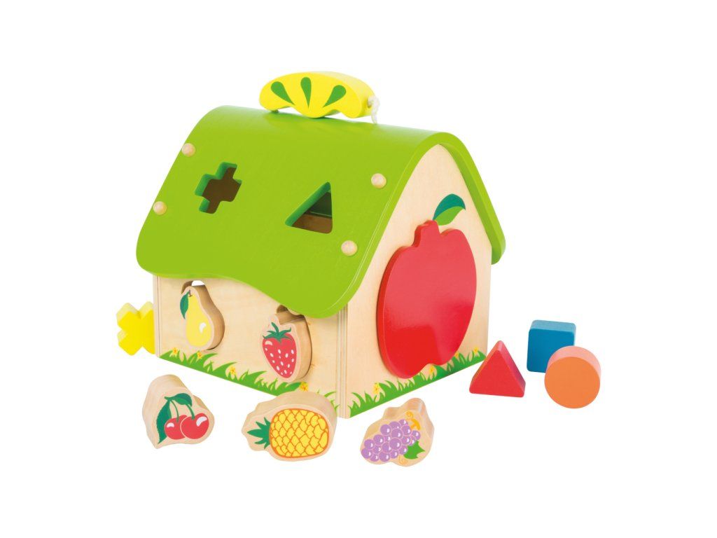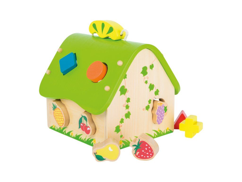 Objevovat a učit se s tímto barevným domem a barevně lakovanými tvary z masivního dřeva je pro děti radost! Při vkládání tvarů do příslušných otvorů si děti procvičují jemnou motoriku formou hry.Hlavní vlastnosti: procvičuje jemnou motorikuvkládání kostek geometrických tvarů nebo ovoceDoplňkové parametry