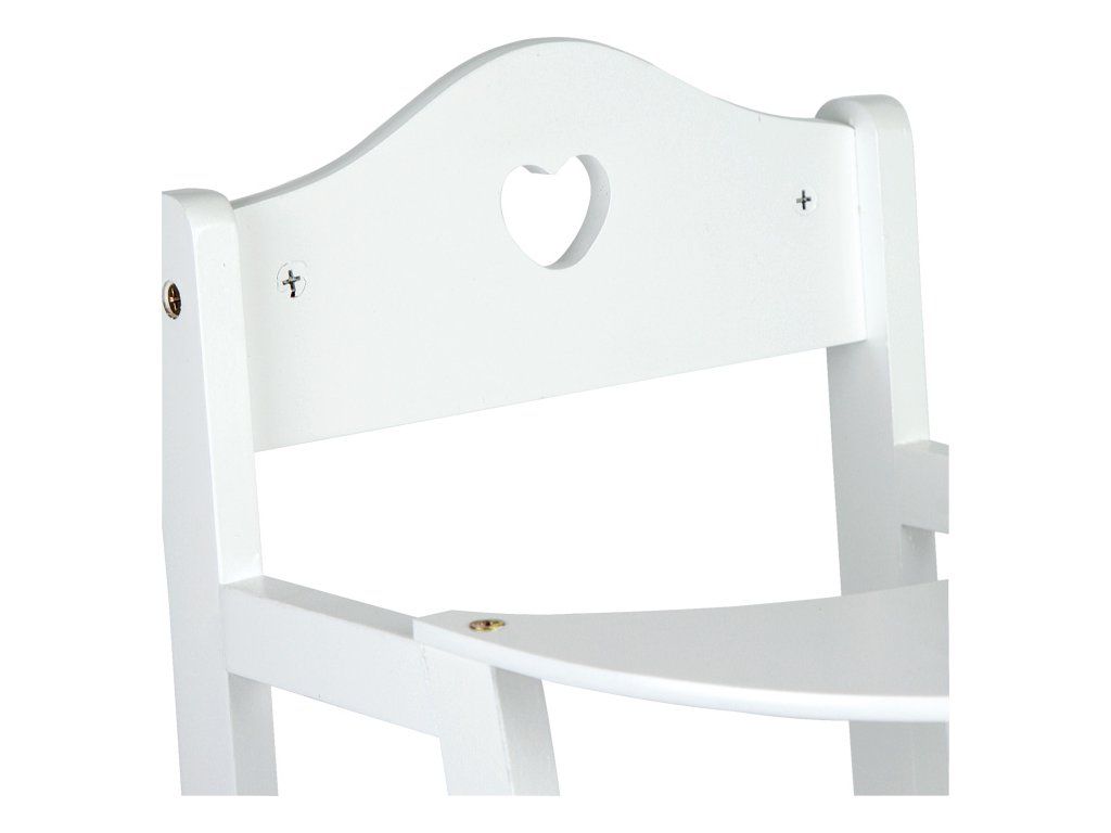 Tato jednoduchá dřevěná jídelní židlička rozbuší srdce všech panenek. Natřená bílou barvou a zdobená malým výřezem srdce je stylovým doplňkem, dětského pokojíčku. Díky svému neokázalému stylu se tato jídelní židlička ideálně hodí do dětských pokojů, ale také do obývacích pokojů. Hlavní vlastnosti: podporuje aktivní hraní a rozvoj sociálních dovedností stabilní konstrukce, kvalitní zpracovánívhodná i do školekDoplňkové parametry