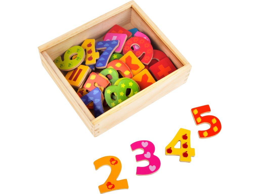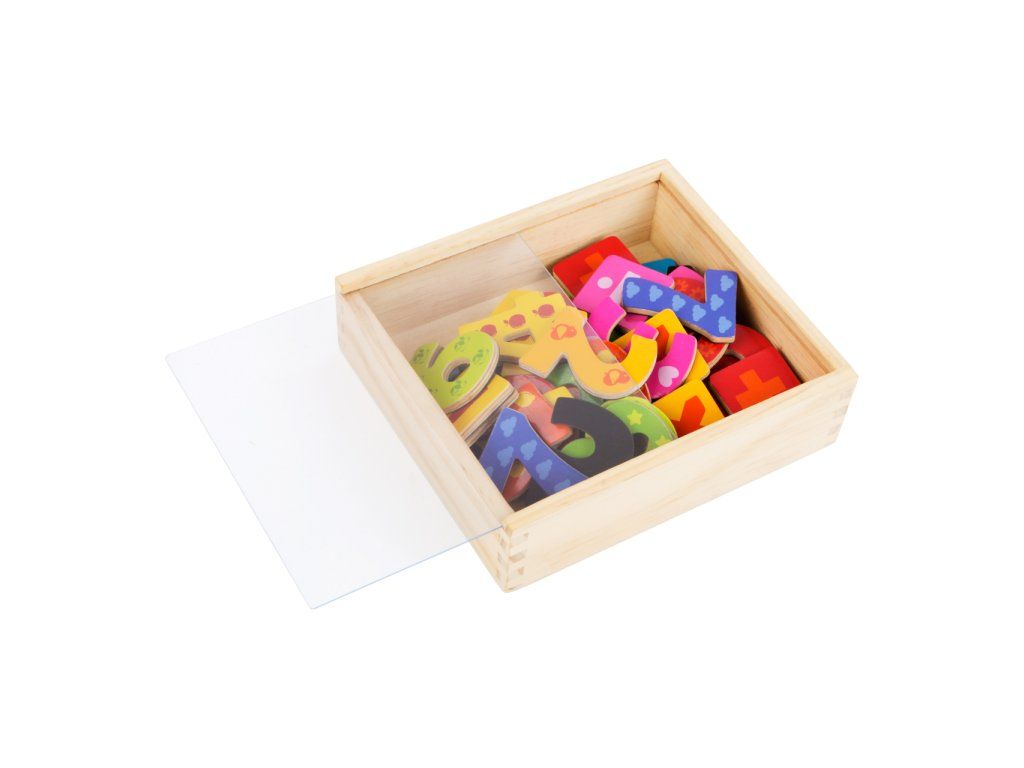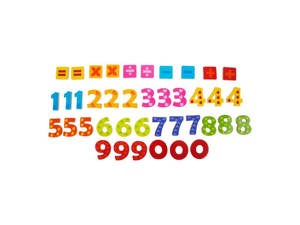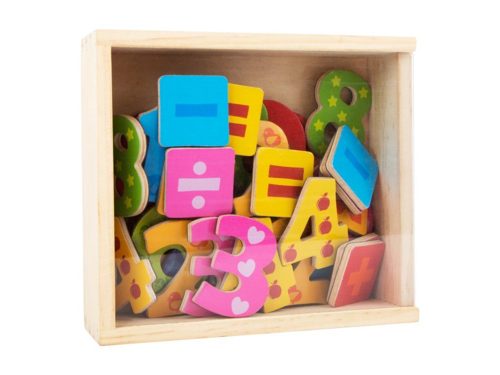 Sada obsahuje 40 barevně malovaných dílků s čísly od 0 do 9 na magnetickém laminovaném dřevě. Tyto dílky lze uložit do dřevěné krabičky s průhledným víkem, kde se zaručeně neztratí. Děti mohou sestavit a vyřešit své první matematické rovnice a rozvíjet tak své logické myšlení. Veselá čísla můžete připevnit na mnohá místa jako např. ledničku, jelikož mají magnetickou funkci. Hlavní vlastnosti: praktické balení - dřevěná krabička s průhledným víkemdidaktická pomůcka k učení počítáníprodukt s magnetickou funkcípestrobarevné provedeníDoplňkové parametry