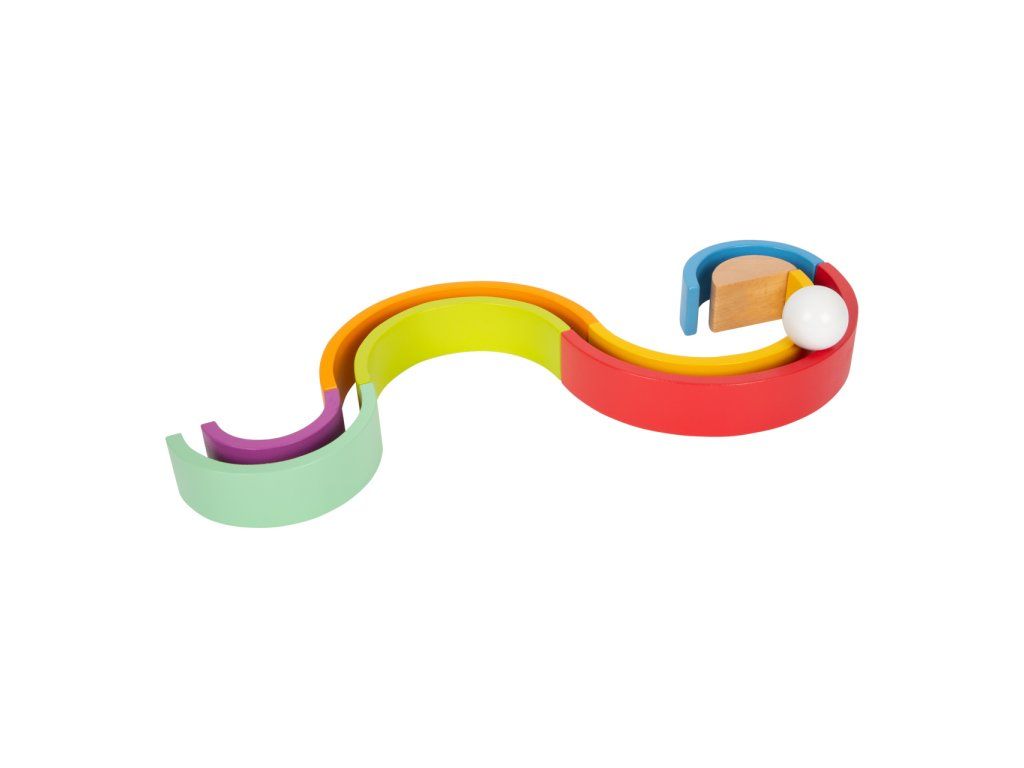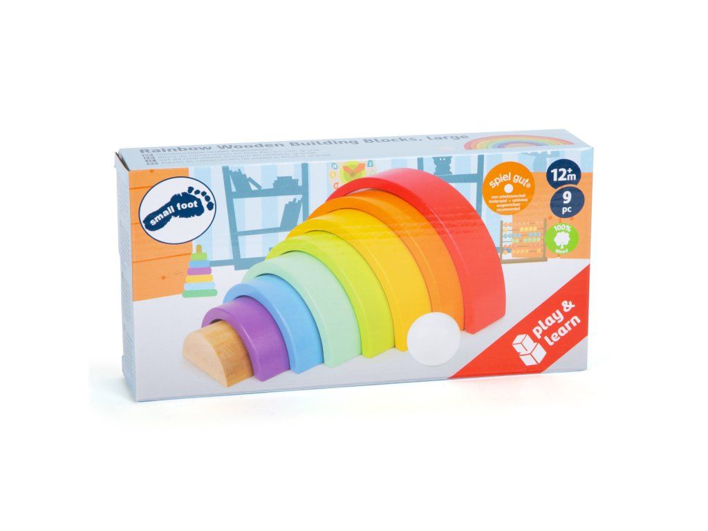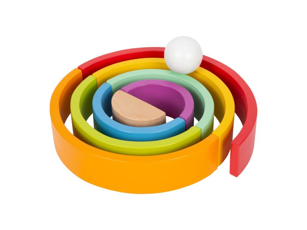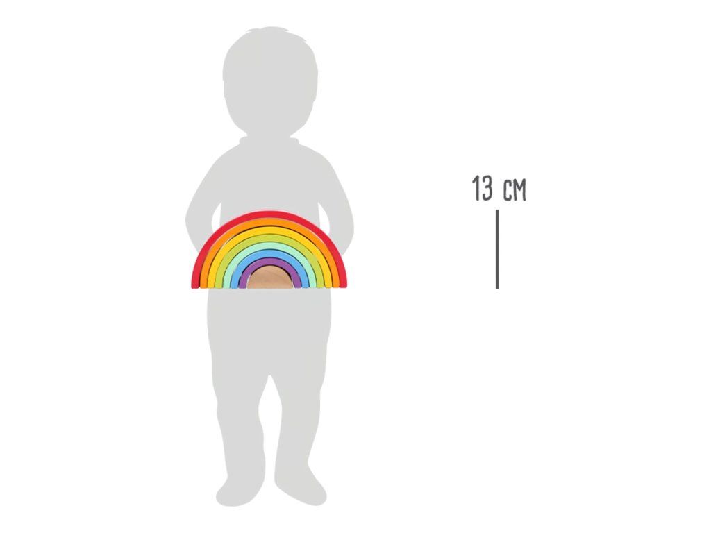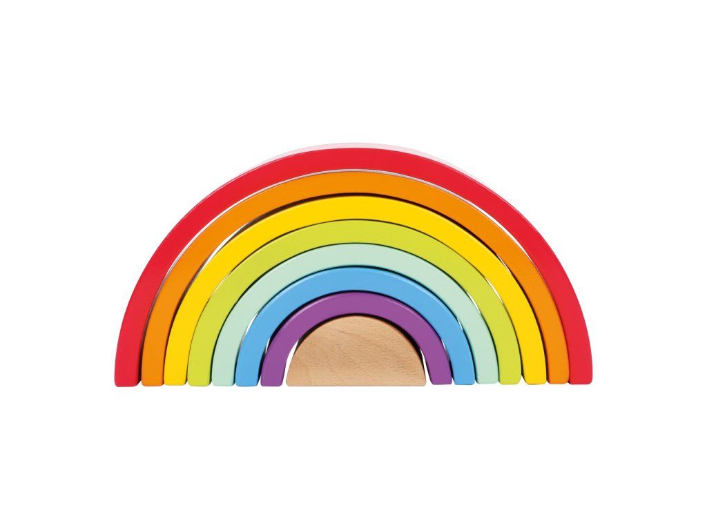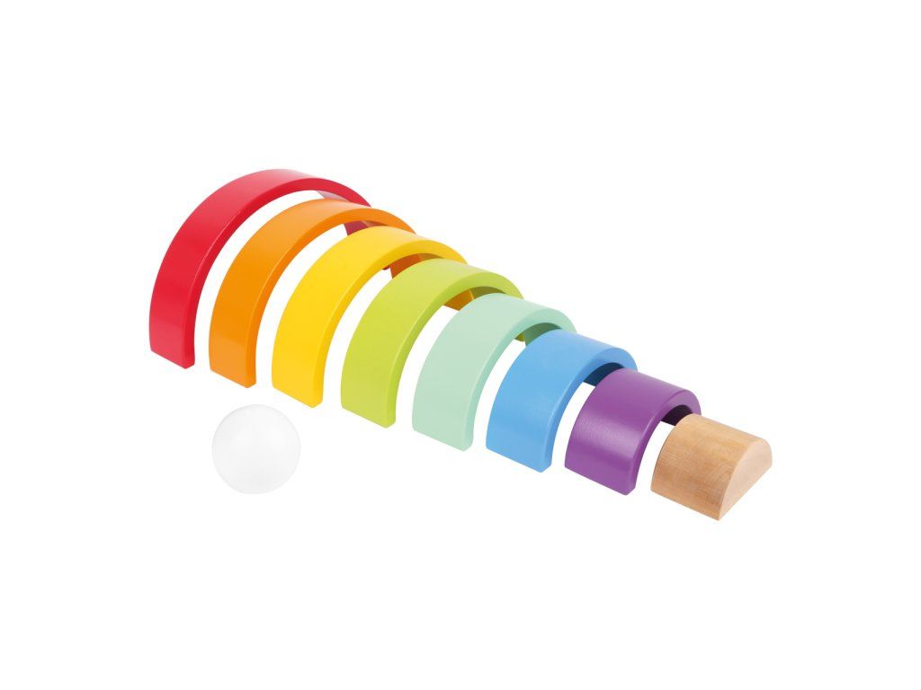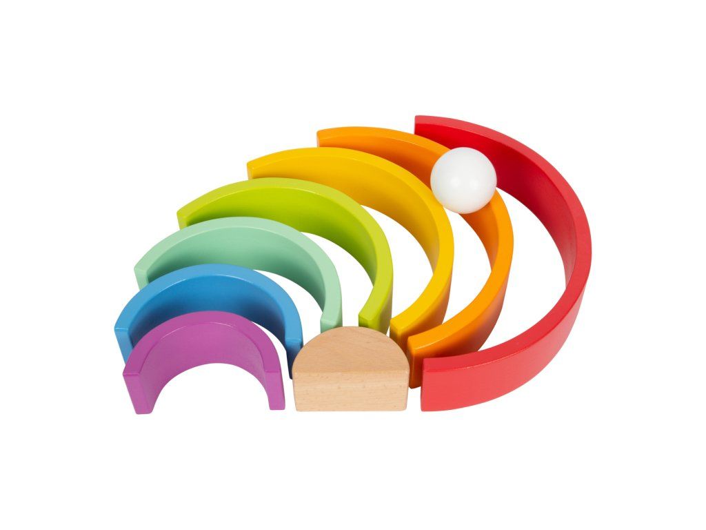 Která barva je nejkrásnější? Tuto robustní dřevěnou duhu doplňuje bílá dřevěná kulička. Archa v barvách duhy je univerzální, můžete ji skládat na sebe, stavět z ní dráhy... Perfektní hračka pro kojence, trénuje motoriku. Hlavní vlastnosti: rozvíjí představivost a jemnou motoriku dítětemožnost naučit se barvy a tvaryprostorové povědomí a obratnostkoordinace ruka-okopomáhá učit se tvořivosti a logickému myšleníDoplňkové parametry