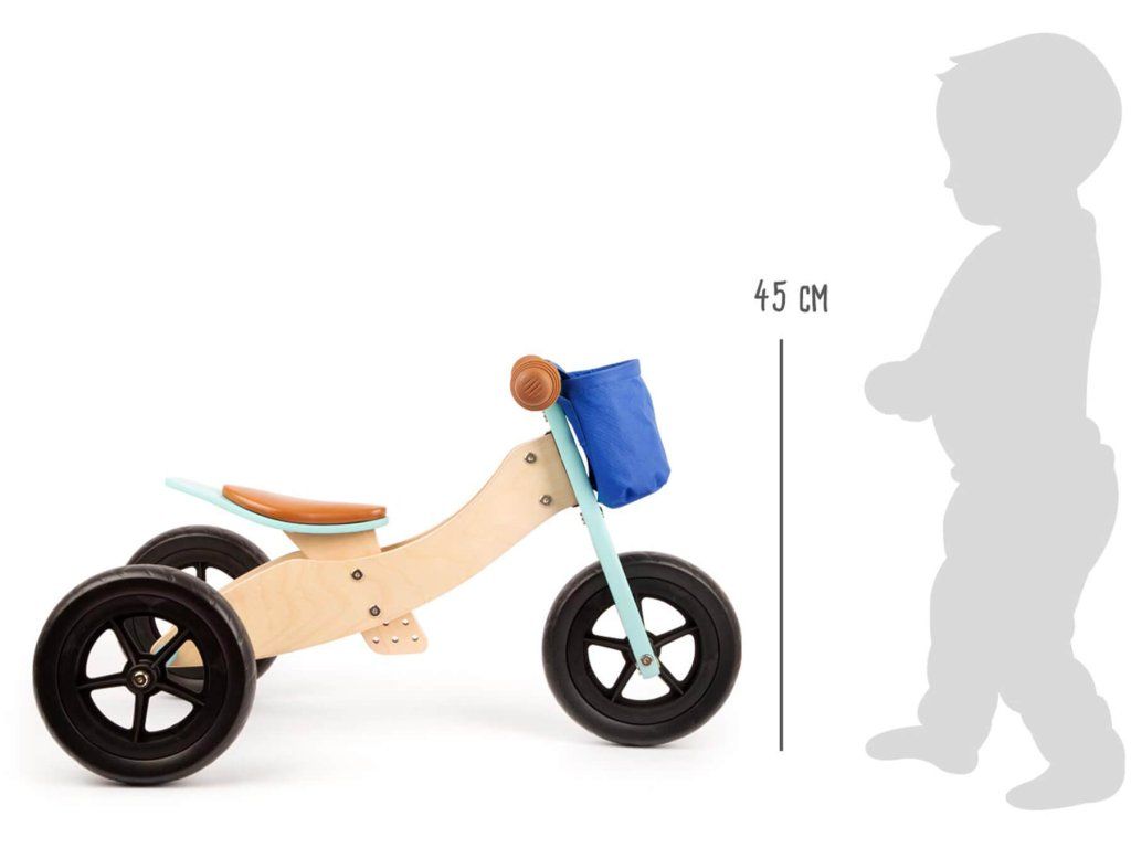 Stylové a bezpečné! Toto lehké dřevěné odážedlo roste díky nastavitelnému sedadlu s dětmi. Když si děti budou na tříkolovém odrážedle jisté, lze jej přestavět na klasickou dvoukolovou verzi! Pro přidanou bezpečnost je na řídítkách tlumič řízení. Do oddělitelného košíku si děti mohou uložit své oblíbené hračky. Gumové rukojeti, nezničitelné EVA pneumatiky a měkké sedadlo zaručují zábavnou a bezpečnou jízdu. Nejprve odrážecí trojkolka k tréninku jízdy, poté balanční odrážedlo! Balanční a trojkolová odrážedla trénují motoriku, rovnováhu a koordinaci. Sedadlo lze nastavit na tři výšky. Hlavní vlastnosti: 2 v 1 - lze použít jako tříkolku a balanční koloroste s dítětem díky nastavitelné výšce sedadlavelmi lehképogumované pneumatikyměkké sedadlo pro pohodlnou jízdutrénuje rovnováhu a koordinaciDoplňkové parametry