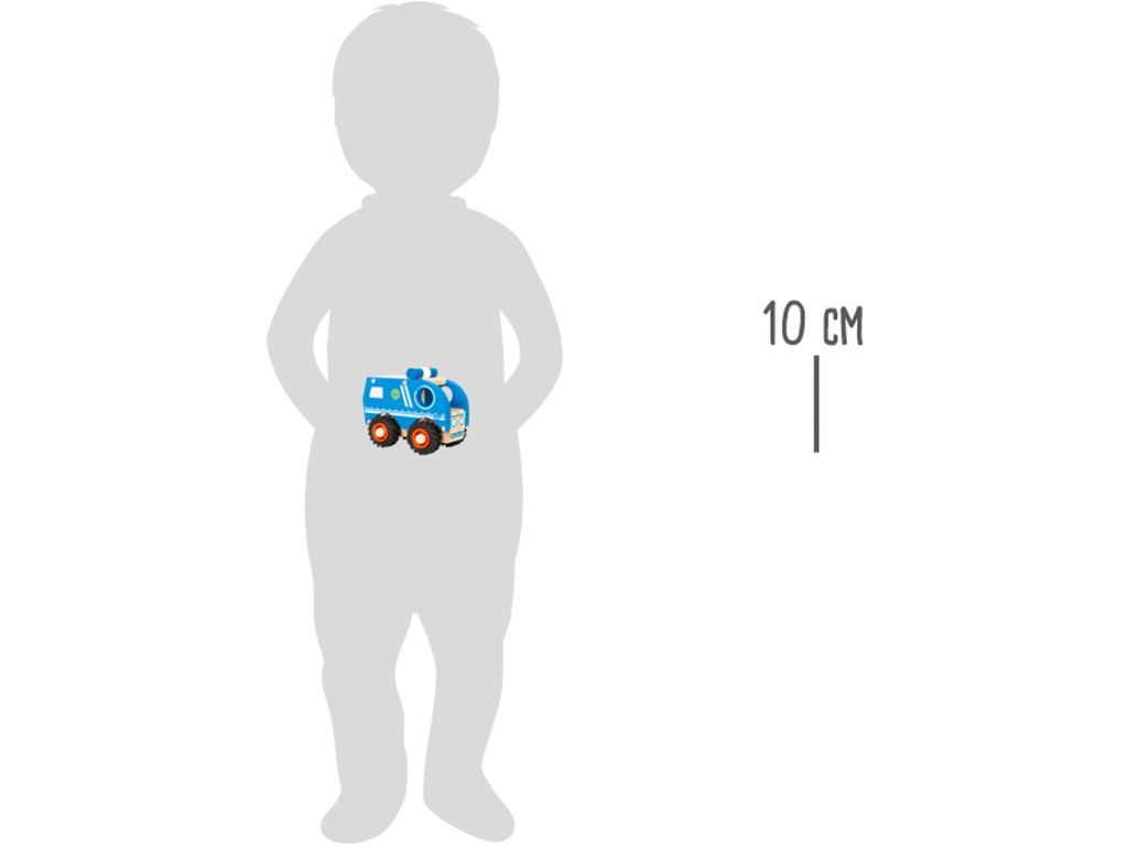 Kde se schovává zloděj? Toto kompaktní policejní auto ze 100% FSC® dřeva je připraveno vyjet na misi. Dřevěné auto rychle projíždí jednoduchým i obtížným terénem díky svým robustním pogumovaným kolům. Pokud zloděje chytíte, můžete jej zavřít do zadního prostoru vozidla. Postavička policisty jej pak odveze do vězení! Postavička není součástí balení. Hlavní vlastnosti: pogumovaná kolečkapřírodní i barevné části100% FSC® dřevo Značka a certifikát FSC® (Forest Stewardship Council) zaručuje, že dřevo, ze kterého byl produkt vyroben, nebylo vytěženo nelegálně a pochází z lesů obhospodařovaných šetrným či přírodě blízkým způsobem, ve kterém jsou dodržovány přísné environmentální a sociální požadavky. Značka FSC® na výrobku znamená, že svým nákupem pomáháte chránit lesy a podporujete šetrné, odpovědné či přírodě blízké hospodaření, díky kterému jsou naše lesy stabilnější, zdravější, mají přirozenou druhovou skladbu a lépe odolávají negativním následkům klimatických změn.Doplňkové parametry