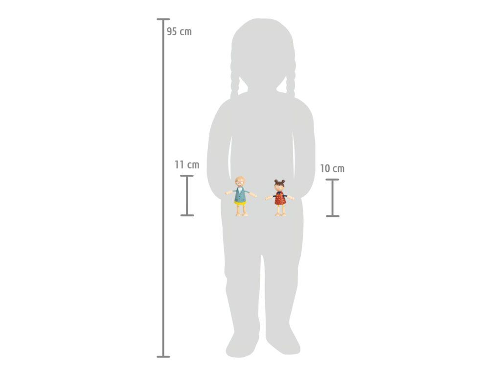 Oživte svůj domeček pro panenky s touto rozkošnou rodinkou! Postavičky jsou vyrobeny z kvalitního dřeva a mají ohebné části z drátků opletených textilií, které jim umožňují stát, sedět a snadno měnit pozice. V sadě najdete maminku, tatínka, babičku, dědečka, bratra a sestru – všechny dokonale přizpůsobené pro dětské ruce. Díky své odolné konstrukci jsou postavičky ideální pro dlouhé hodiny plné zábavné hry. Hlavní vlastnosti: 6 figurekodolné a pohyblivéprecizně propracované detailyideální pro nápaditou hruDoplňkové parametry