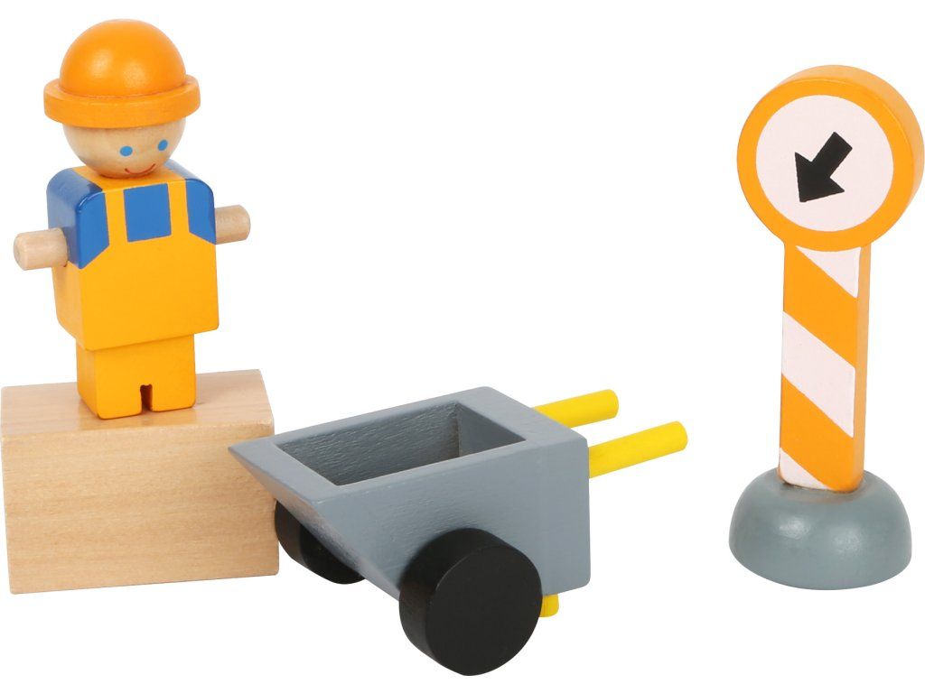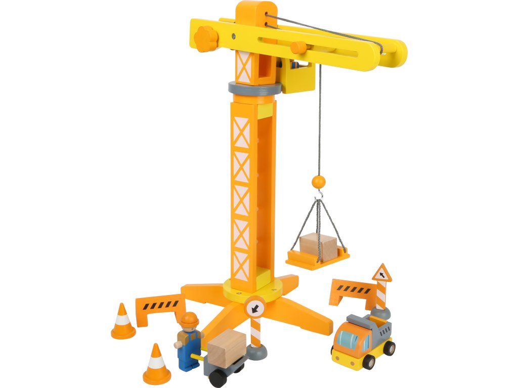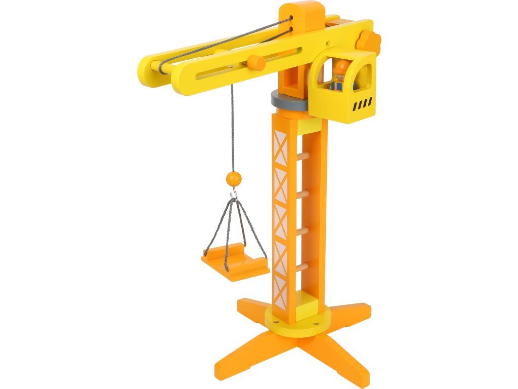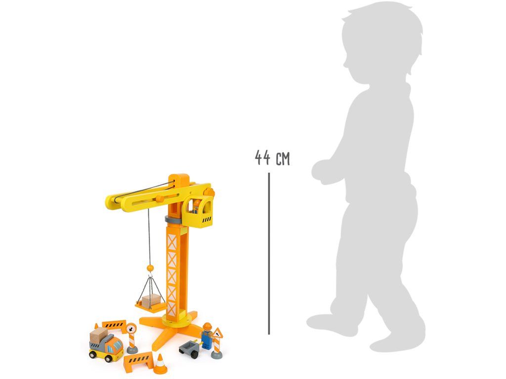 Cítíte tu vůni staveniště? Robustní dřevěný stavební jeřáb s 360 stupňovou rotací, pohyblivým ramenem a háky pro přepravu rozmanitého zboží ocení malí stavitelé. Zatímco dělníci zabezpečují staveniště dopravními kužely, značkami a zátarasy, jeřábník a řidič nákladního vozu se snaží naložit zpracovávaný materiál. Obsluha jeřábu ze své kabiny koordinuje plošinu tak, aby ji bylo možné bezpečně spouštět pomocí kliky a lana. Po skončení práce může motivovaný jeřábník opustit své pracoviště vnitřním žebříkem. Hlavní vlastnosti: obsahuje 14 dílůjeřáb se otáčí o 360 stupňůdodává se s klikou pro ovládání přepravní plochypodporuje hraní rolí a představivostDoplňkové parametry