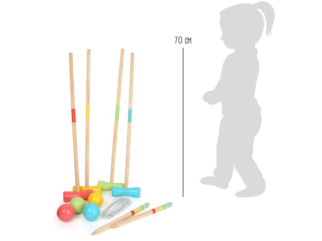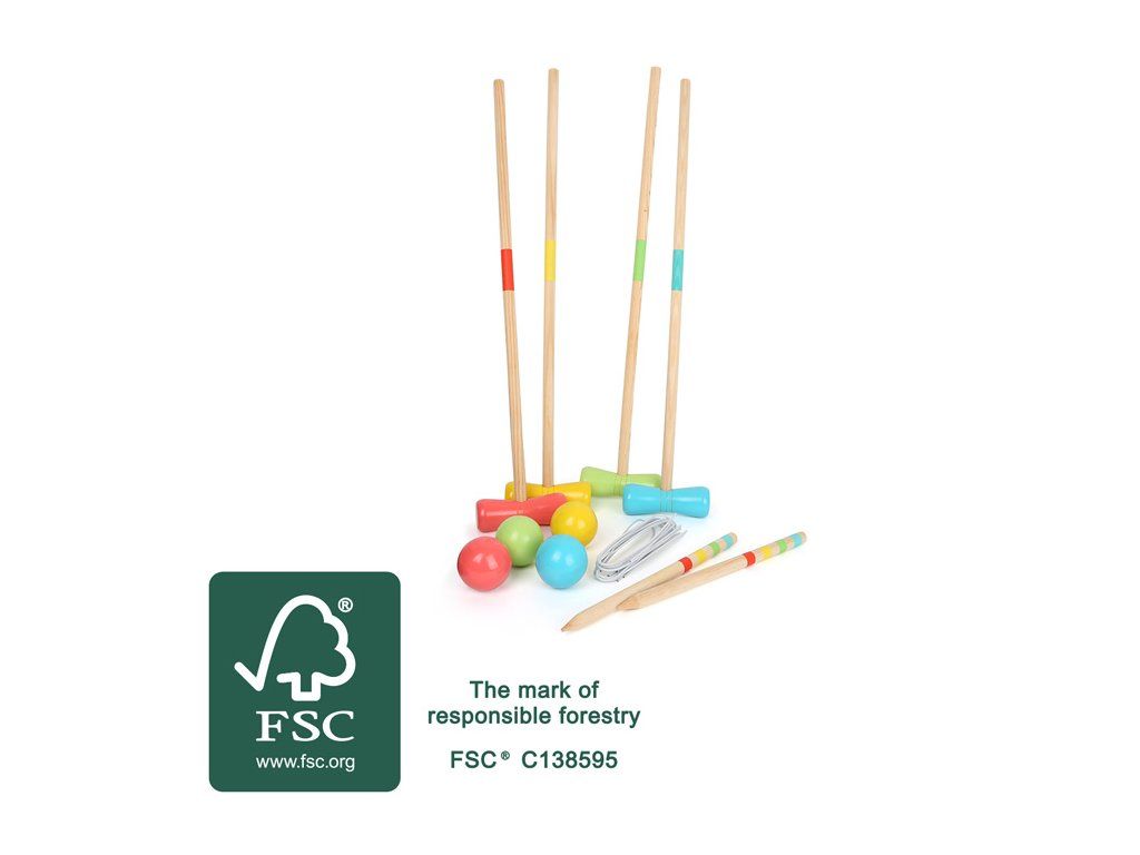 Klasická hra na zahradu. Venkovní hra ze 100% certifikovaného dřeva FSC® je skvělou zábavou pro celou rodinu. Branky lze zaseknout do trávy s většími nebo menšími rozestupy a v různých formacích, takže vytvoříte různé úrovně obtížnosti. Dřevěné kuličky musí projít všemi brankami. Hlavní vlastnosti: rozvíjí motoriku a koordinaci pohybů dětípodporuje zdravou soutěživostvyrobeno z 100% FSC dřeva Značka a certifikát FSC® (Forest Stewardship Council) zaručuje, že dřevo, ze kterého byl produkt vyroben, nebylo vytěženo nelegálně a pochází z lesů obhospodařovaných šetrným či přírodě blízkým způsobem, ve kterém jsou dodržovány přísné environmentální a sociální požadavky. Značka FSC® na výrobku znamená, že svým nákupem pomáháte chránit lesy a podporujete šetrné, odpovědné či přírodě blízké hospodaření, díky kterému jsou naše lesy stabilnější, zdravější, mají přirozenou druhovou skladbu a lépe odolávají negativním následkům klimatických změn.Doplňkové parametry