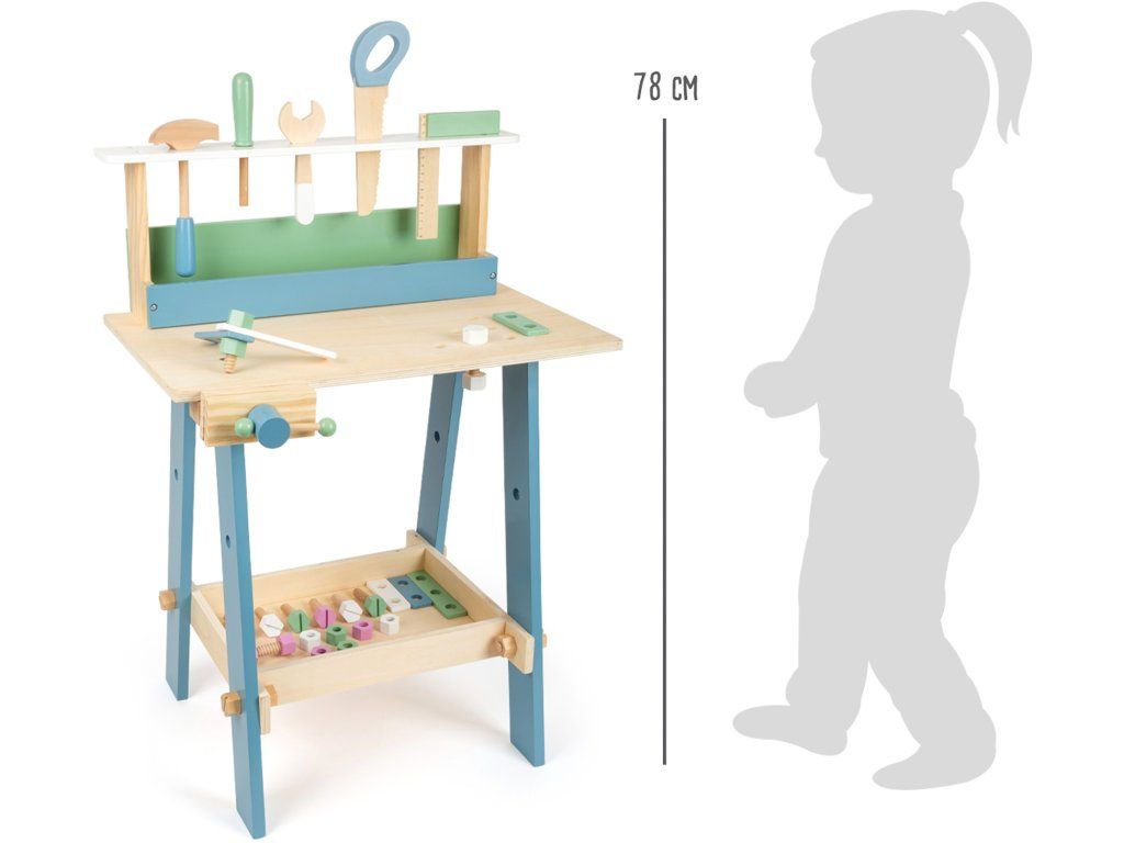Jemné pastelové barvy, pěkné tvary, přírodní materiál – to je severský design! S tímto dřevěným ponkem se mohou děti při hře naučit manuální zručnosti. Obsahuje 24 doplňků – 9 šroubů, 9 matek, 6 plátů s dírami pro trénování jemné motoriky. Děti mohou pomoci při složení ponku a dokázat tak, že mají talent pro manuální práci. Ponk ve skandinávském designu se bude hodit do každého domova. Je to skvělá hračka pro kluky i holky. Hlavní vlastnosti: inspiruje ke kreativní a představivé hřeobsahuje 24 doplňkůpo rozbalení nutno složitDoplňkové parametry