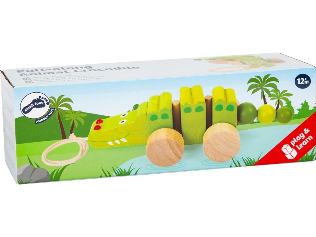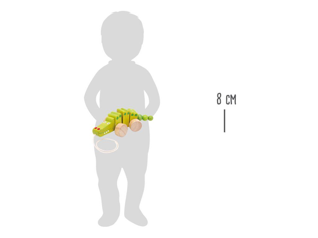 Tento legrační krokodýl, vyrobený z vysoce kvalitního zeleně glazovaného a neošetřovaného bukového dřeva, se za dětmi při zatažení za provázek vesele vrtí. Díky šňůře mohou nejmenší za sebou tohoto roztomilého tahacího krokodýla snadno tahat a chodit spolu na procházky. Hlavní vlastnosti: podporuje rovnováhu a koordinaci pohybůveselé barevné provedení i designDoplňkové parametry