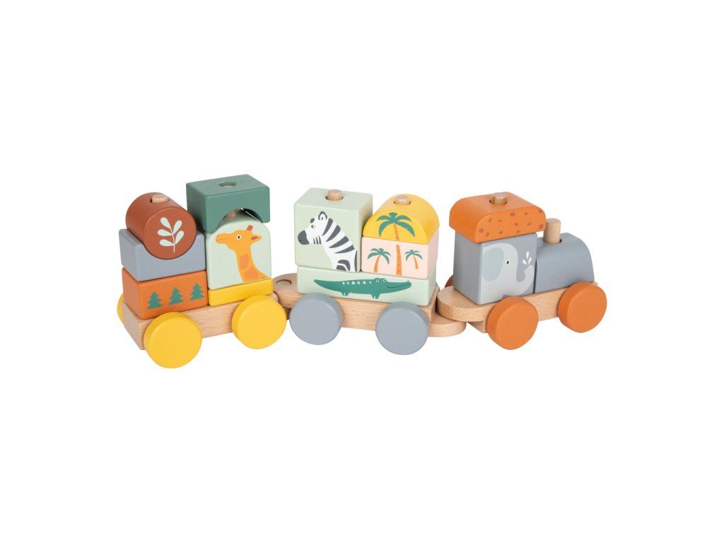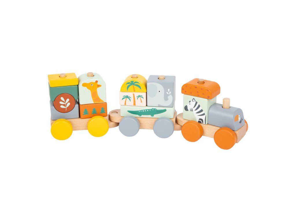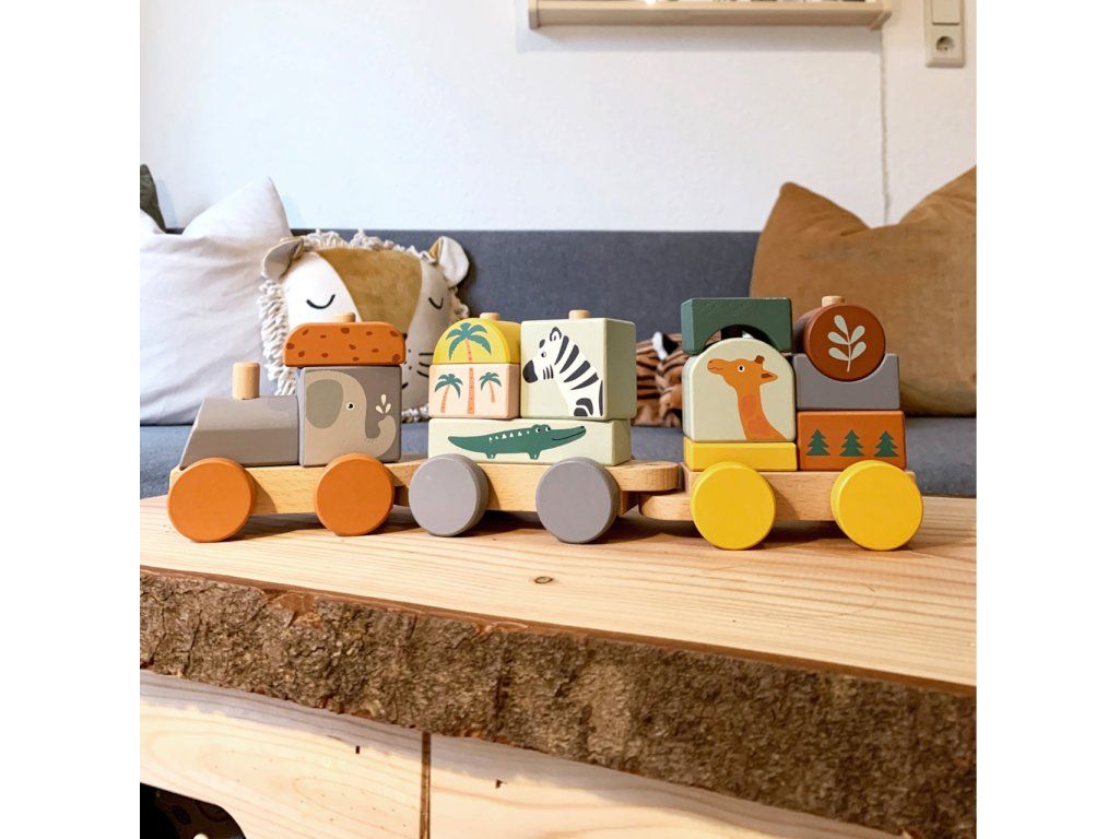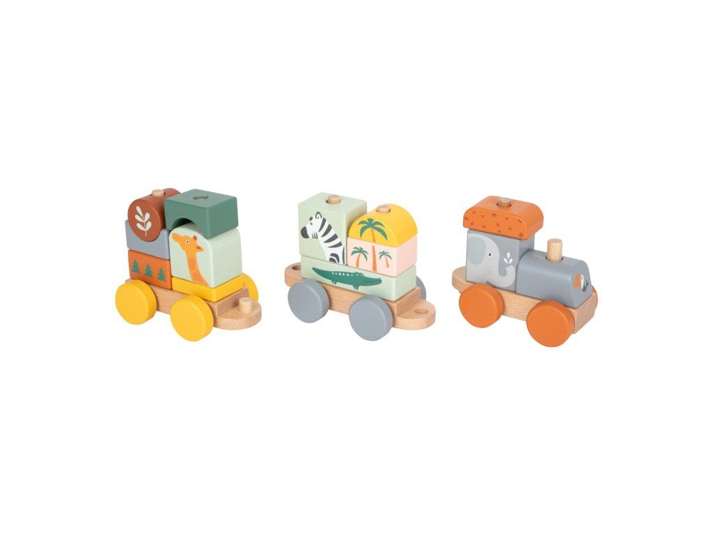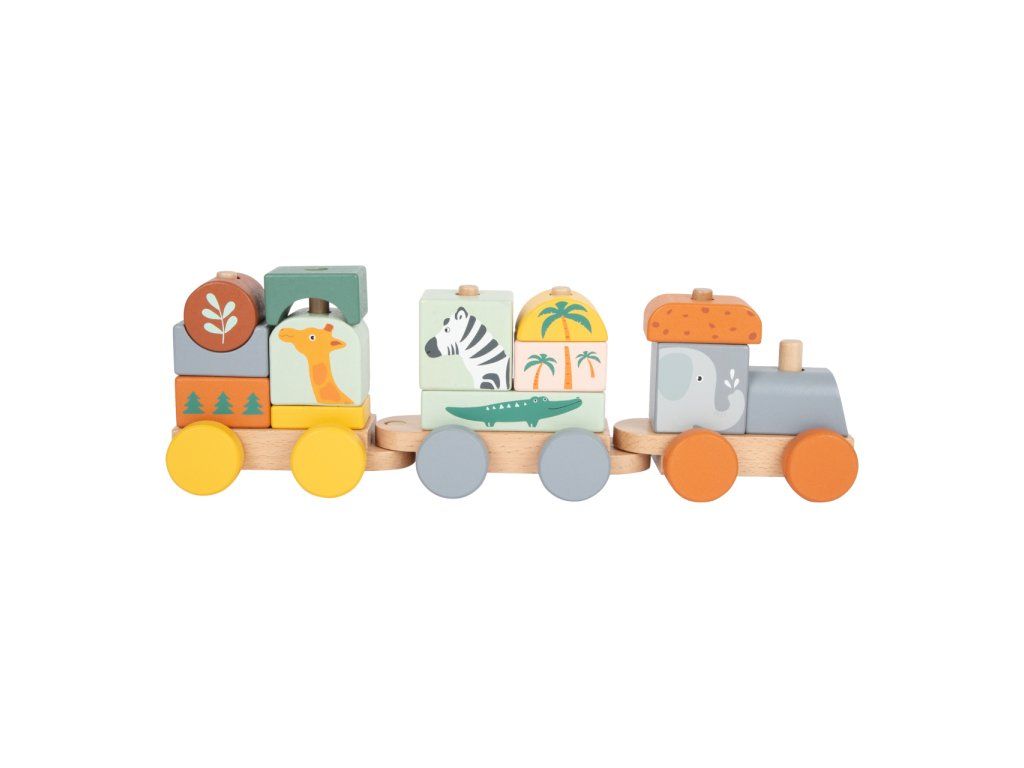 Složte jej a vyražte ze stanice! Tento dřevěný vláček v trendy barvách se rozjede až po nastoupení všech pasažérů – zebry, slona, žirafy a krokodýla. Vláček s mnoha detaily je zároveň nasazovací hračkou, která dává dětem volnost při skládání – každá kostka pasuje na více míst. Příští zastávka: Safari! Hlavní vlastnosti: ilustrováno v pastelových barváchobsahuje 1 lokomotivu, 2 vagóny a 13 dílůtrénuje motoriku a představivostDoplňkové parametry