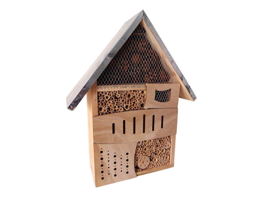 Pozvěte maličké hmyzí kamarády do luxusního hotelu, kde mohou nalézt rozmanitá útočiště podle vlastní chuti! Budete je tak moci mít na blízku pro pozorování a rozlišování. Hmyz je velmi důležitý pro růst květin a přispívá i k bohaté úrodě ovoce. Který druh si za úkryt vybere šišku? A který bambusovou trubičku? Hotýlek poslouží i jako dekorace, která zpestří Vaši zahradu. Dlouhou životnost příbytku zajišťuje plechem krytá střecha. Ta je opatřena i kovovým háčkem pro snadné a spolehlivé zavěšení. Hlavní vlastnosti: praktický doplněk, atrakce i dekoraceplechem krytá střecha pro dlouhou životnostodolné dřevěné provedeníDoplňkové parametry