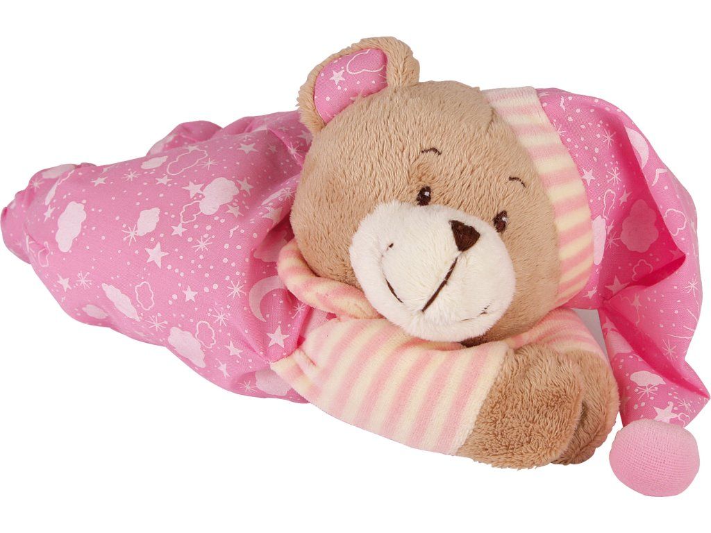 Už žádné noční můry! Medvídek v růžovém pyžamku přeje sladké sny! Tělíčko má z měkkého materiálu a na tváři veliký úsměv. Po hodinách zábavy a hraní Vám pomůže usnout za ukolébavky „Dobrý večer, dobrou noc“. Méďa je ten pravý kamarád, ve štychu Vás nenechá! Hlavní vlastnosti: rozvíjí představivostmožnost zavěšeníhraje ukolébavku „Dobrý večer, dobrou noc“roztomilý společník a skvělý dárek pro naše nejmenšíDoplňkové parametry