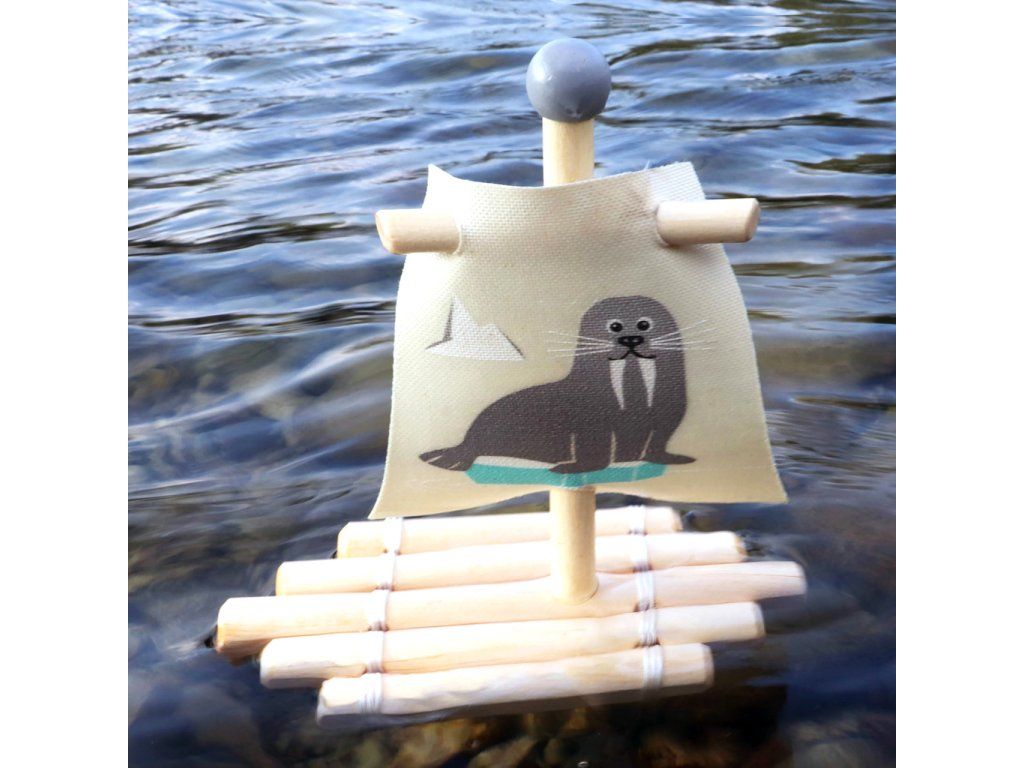 Hračka do vody - vor mrož. Ahoj, kapitáne! Tento dřevěný vor je perfektní pro malé námořníky. Mohou jej postrkovat po vodě a užít si tak každé koupání! Ať už ve vaně, na bazéně či u moře – když se tato hračka dostane do vody, už ji nic nezastaví. Vodní hračky vyrobené ze dřeva jsou ekologičtější alternativou plastových a gumových hraček. Pro delší životnost hračky ji po vytažení z vody pořádně osušte. Hlavní vlastnosti: využití ve vaně, na bazéně nebo u mořehra podporuje fantaziipři plavbě v přírodě je poháněna větremDoplňkové parametry