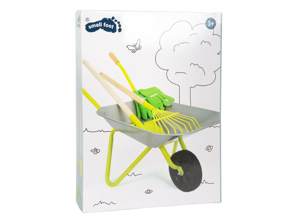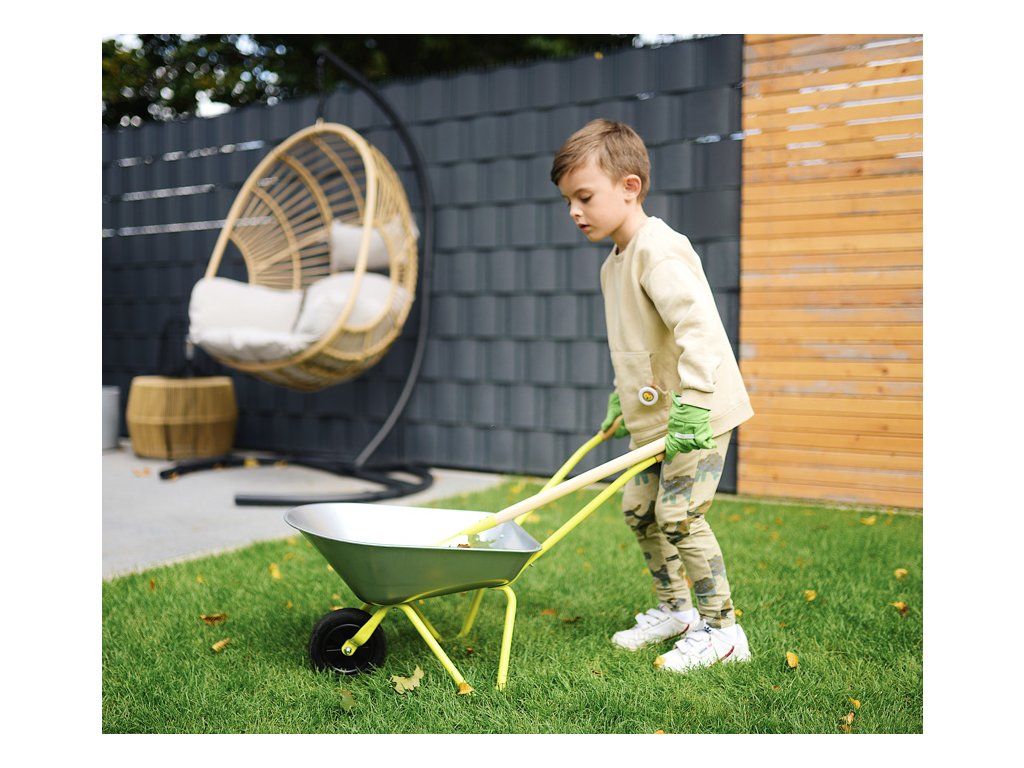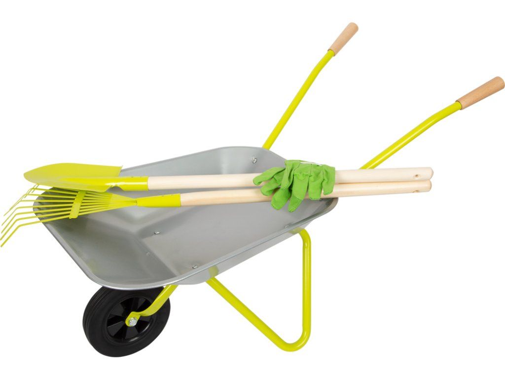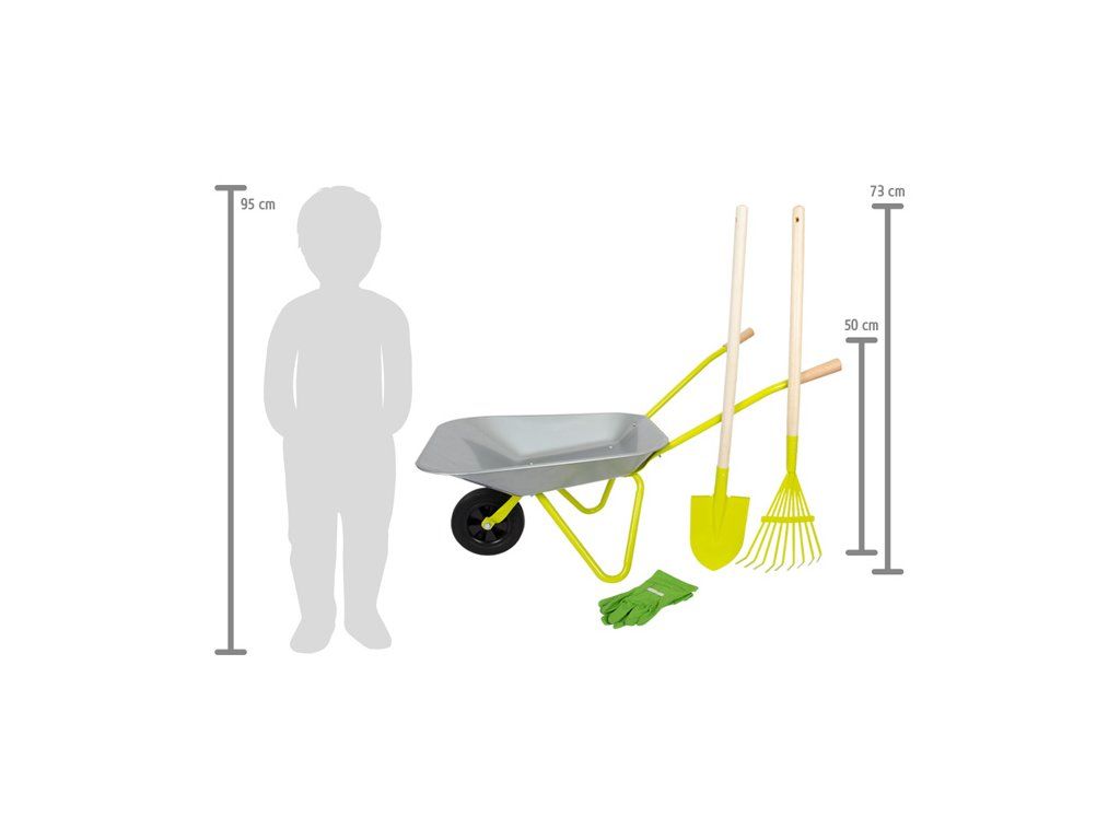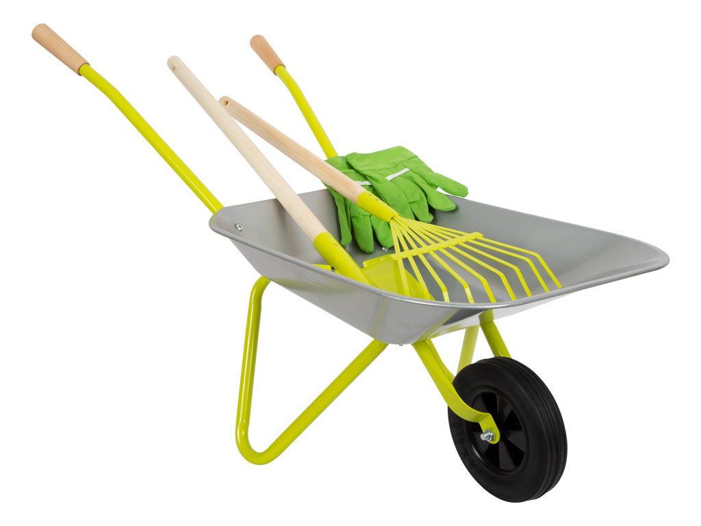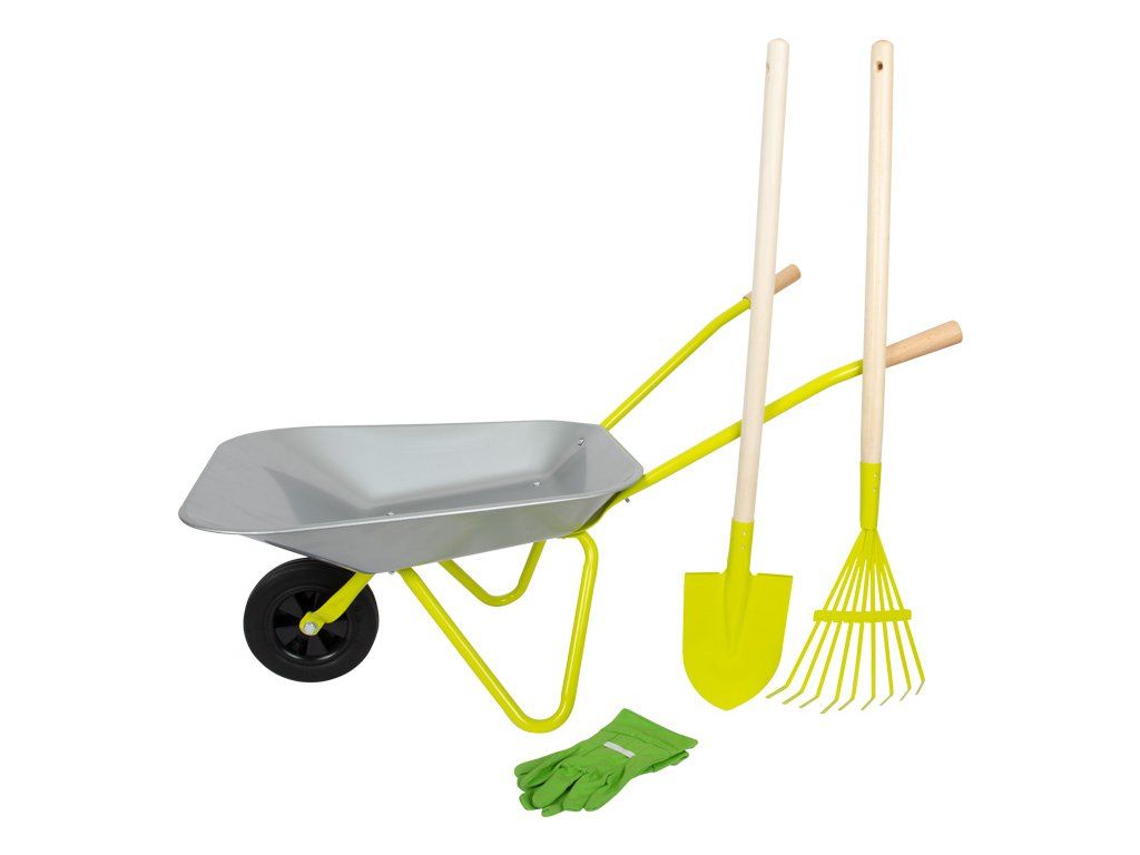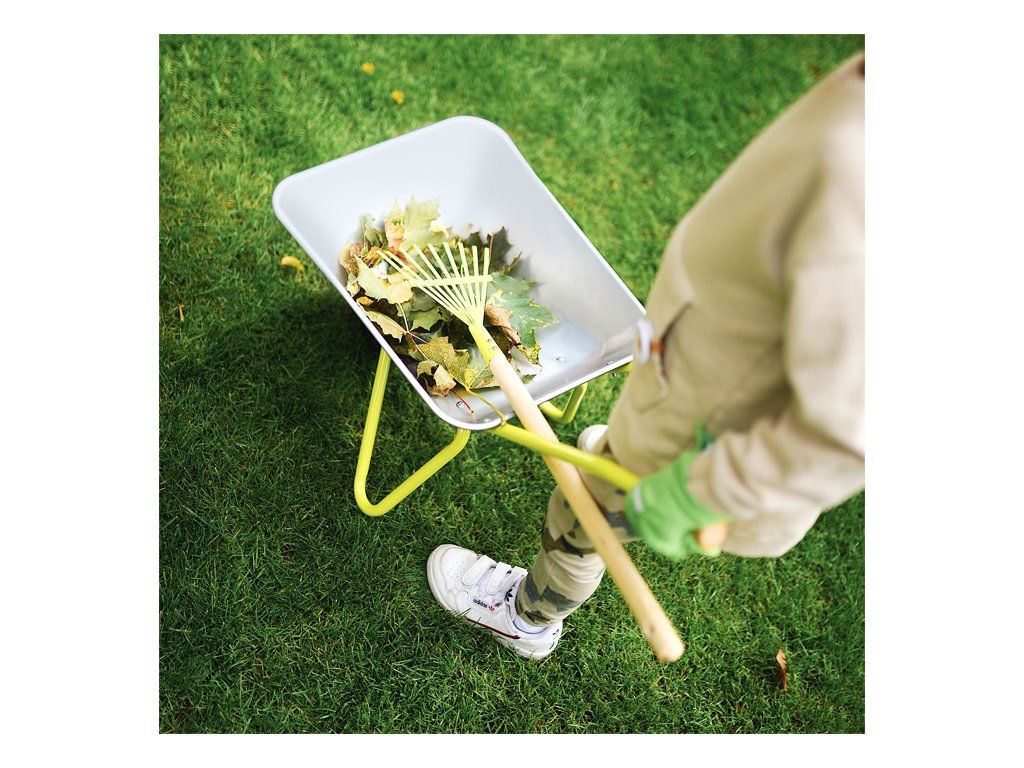 Perfektní vybavení pro práci na zahradě! Kolečko má objem asi 10 litrů, s bavlněnými rukavicemi, lopatou a hrabkami pak děti mohou rodičům vypomoci na zahradě. Hlavní vlastnosti: extra velký objemdřevěné rukojetikolečko z nebarveného kovurobustní gumové kolo lopata a hrábě, textilní rukavice ze 100% bavlnyDoplňkové parametry