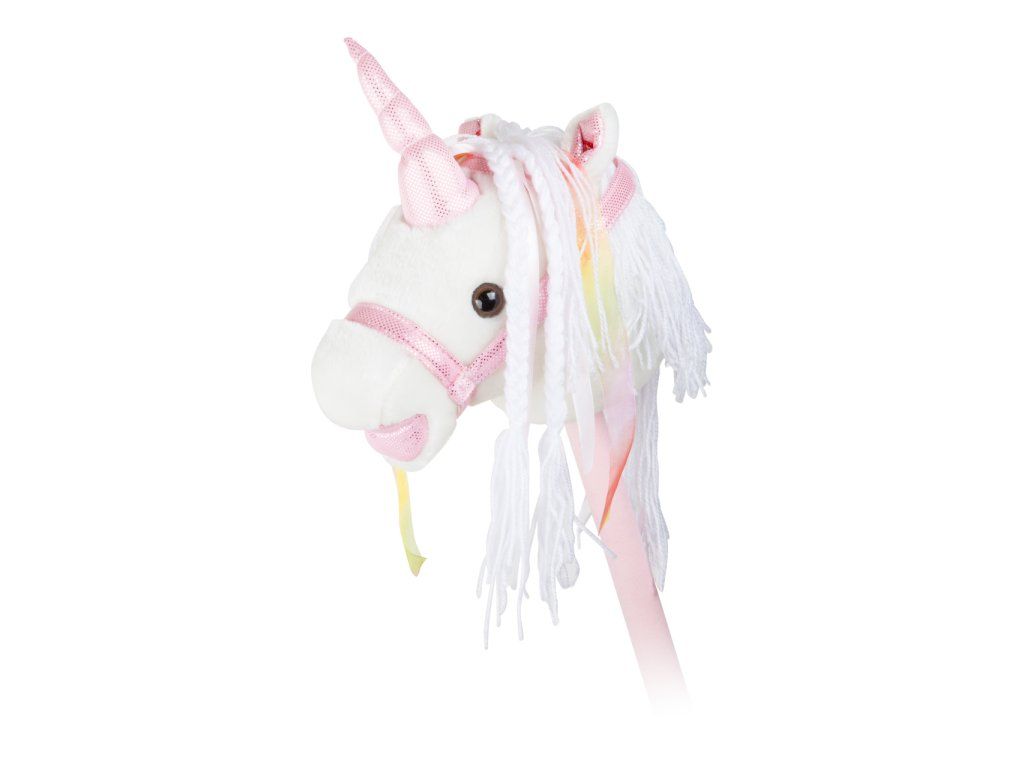 Jízda plná fantazie a kouzel může začít! Roztomilý jednorožec je vyroben z měkoučké plyše, jeho hřívu zdobí pestré duhové prameny a roh je vyzdoben zářivými flitry. Po stisknutí levého ucha se ozve zvuk trysku a stisknutím pravého ouška koník zařehtá. Baterie jsou zabudovány uvnitř hlavy koně, typ a počet baterií výrobce neuvádí. Hlavní vlastnosti: podporuje pohybovou aktivitu měkké plyšové provedení na stabilní tyčirůzné zvukové efekty (baterie jsou součástí balení)Doplňkové parametry