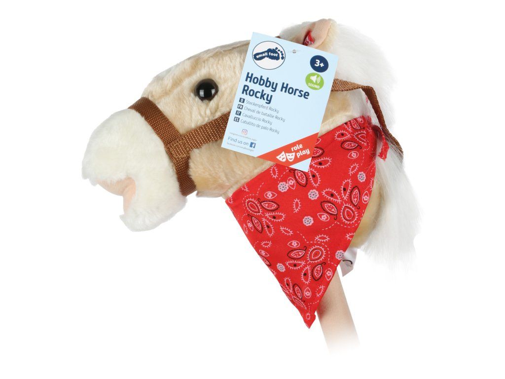 Tento roztomilý kůň s trendovým šátkem na krku převeze jezdce přes kopec a údolí. Hlava je z měkkého textilu na stabilní tyči. Po stisknutí tlačítka na uchu, kůň řehtá. Baterie jsou zabudovány uvnitř hlavy koně, typ a počet baterií výrobce neuvádí. Hlavní vlastnosti: kůň řehtábaterie jsou součástí balenípodporuje pohybovou aktivituDoplňkové parametry
