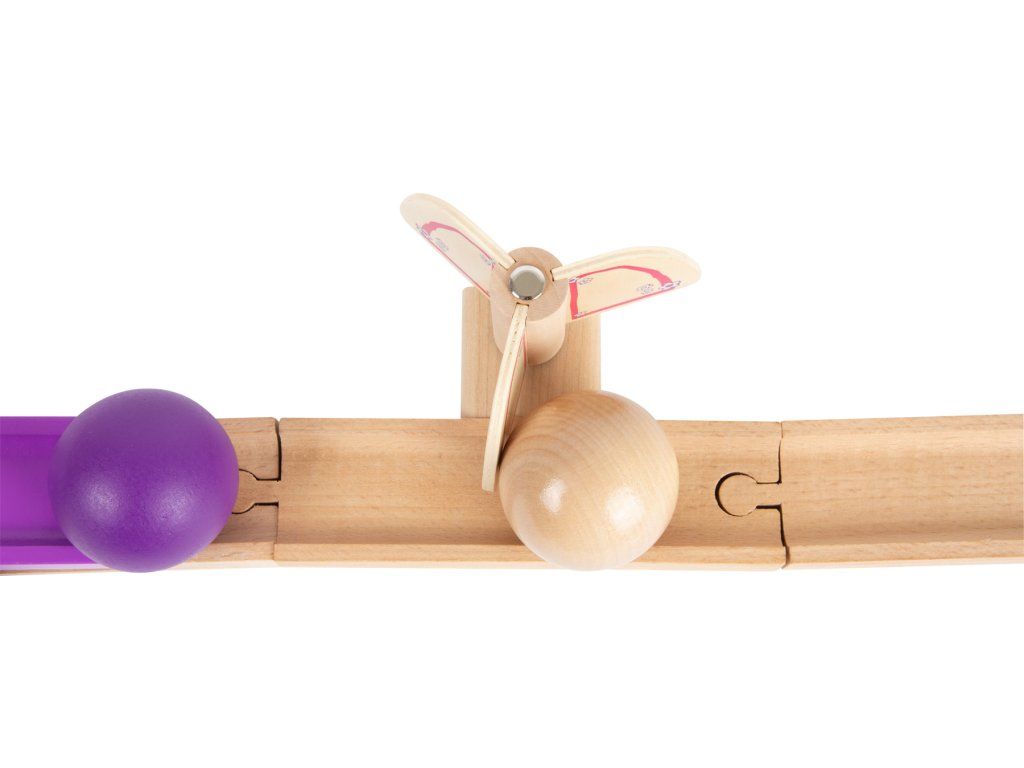 Kuličková zábava pro nejmenší! Součástky této kuličkové dráhy lze jednoduše složit, velká barevná kulička tak může začít svůj závod opravdu rychle! Na této dráze najdete klouzačku, mlýn, houpačku. Dráha je z přírodního dřeva s barevnými prvky. Děti se zábavnou formou naučí o příčíně a následku, také si potrénují postřeh při sledování pohybujících se předmětů. Jednoduchý design, který nezahltí dětské smysly, součástky jsou dost velké, takže je děti nemohou jednoduše spolknout. Součástky jsou pro děti jednoduše uchopitelné. Díky modulárnímu designu mohou děti postavit mnoho různých typů drah. Je také kompatibilní s Kuličkovou dráhou stavební stroje LE11382. Starší děti mohou na dráhu místo kuliček pusit autíčka. Hlavní vlastnosti 11 dílná dráha3 kuličkyHoupačkaKlouzačkaMlýnKompatibilní s LE11382Doplňkové parametry