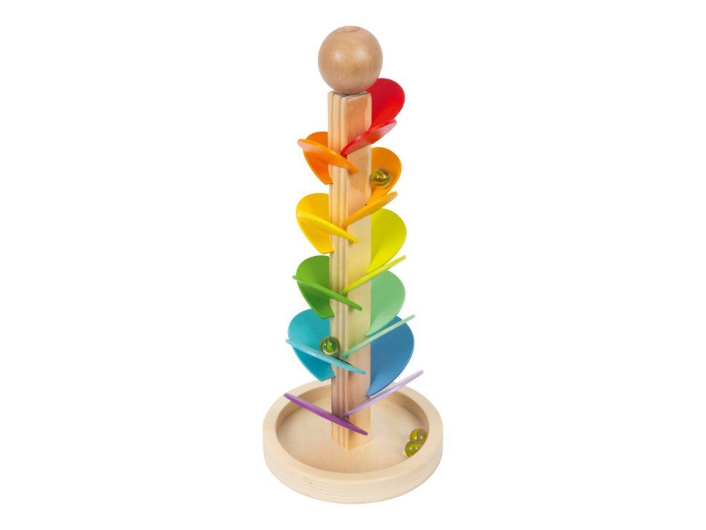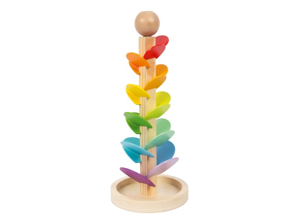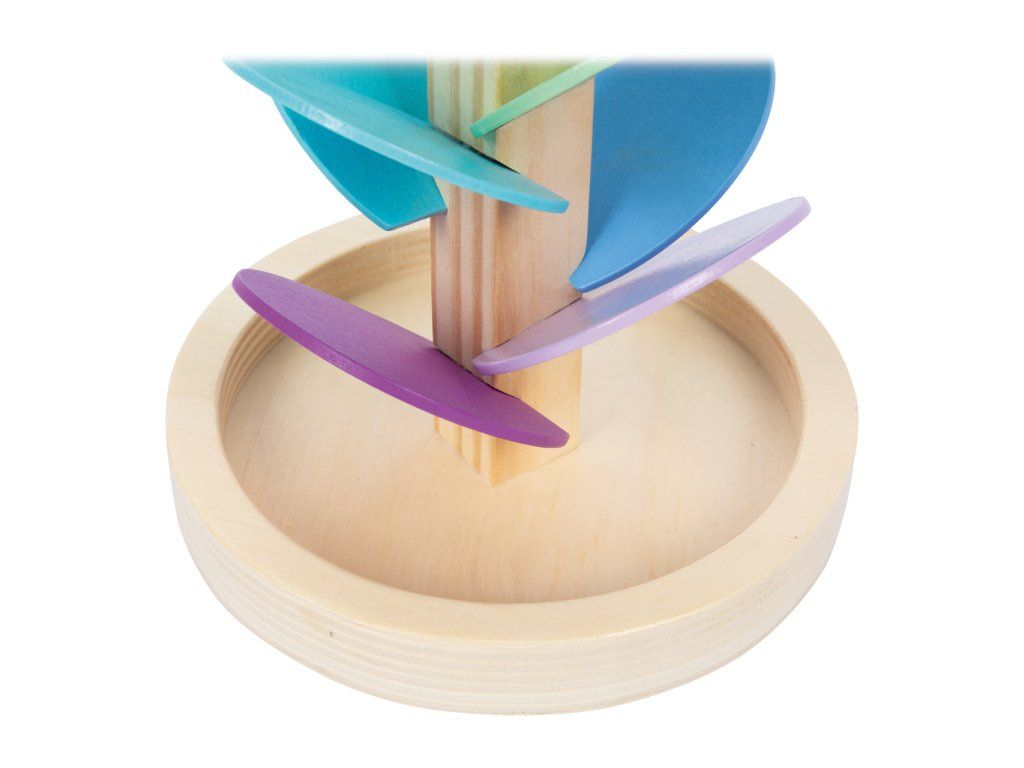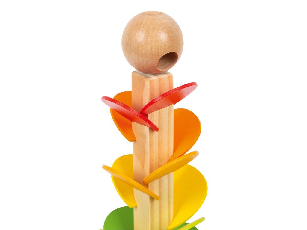 Sledujte a poslouchejte. Tato kuličková dráha poskytuje opravdický zvukový zážitek. Jakmile se skleněná kulička vloží do dřevěné dráhy, lze postupně slyšet různé zvuky, protože cestou dolů padá na různě veliká dřevěná křídla podobná větrníku, čímž vznikají různé zvuky. Zvuk se mění seshora dolů od vyšších tónů k nižším tónům ve spodní části. Děti budou nadšeny. Kuličky jsou součástí balení. Fotografie jsou ilustrační, produkt se může lišit v barevných detailech. Hlavní vlastnosti: zvuková hračkarozvíjí zručnost a smysly dětídekorativní poutač v dětském pokojiDoplňkové parametry