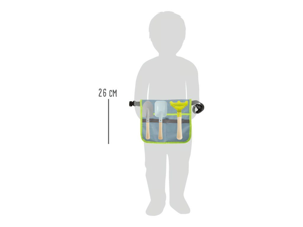 S touto ledvinkou na zahradní nářadí mohou mladí a začínající zahradníci opravdu pomáhat na zahradě a přitom mít volné ruce. Jednoduše si nasaďte snadno nastavitelný opasek s cvakací sponou a výsadba může začít! Lopata, hrábě a rýč jsou vyrobeny z kovu, mají velikost vhodnou pro děti a stabilní dřevěné rukojeti. Zábava na vlastní zahradě je zaručena! Hraní a výsadba podporuje aktivní hraní rolí a trénuje motorické dovednosti. Ideální doplněk. Hlavní vlastnosti: ideální doplněkledvinka s 3 ks nářadípodporuje hru a motorické dovednostiDoplňkové parametry