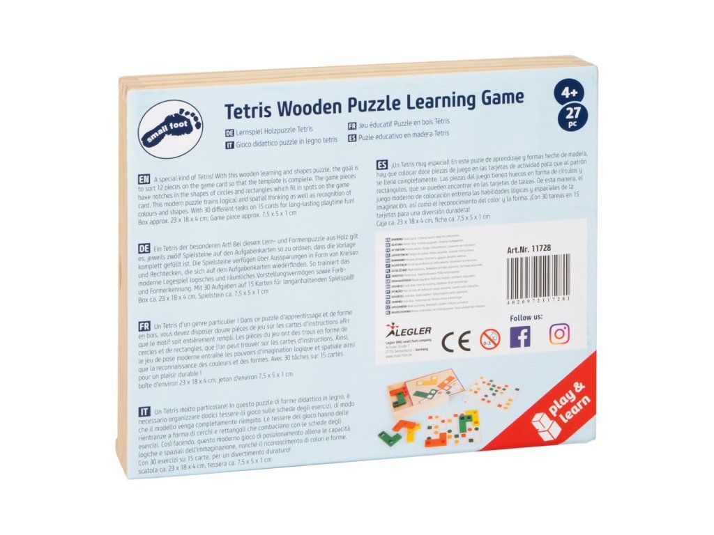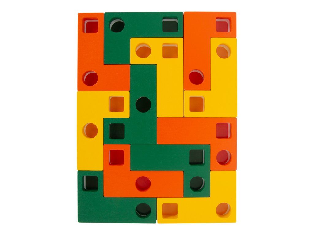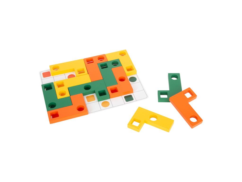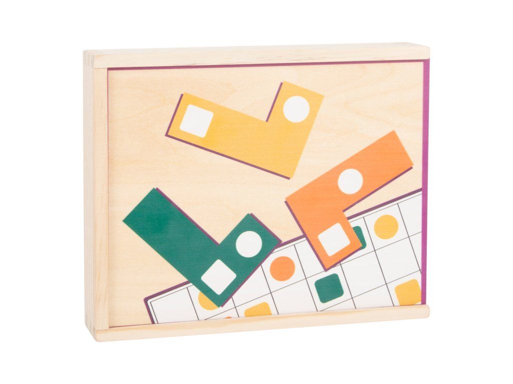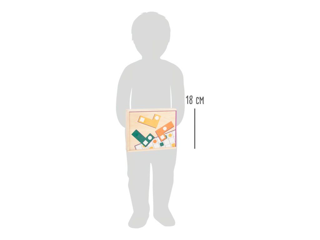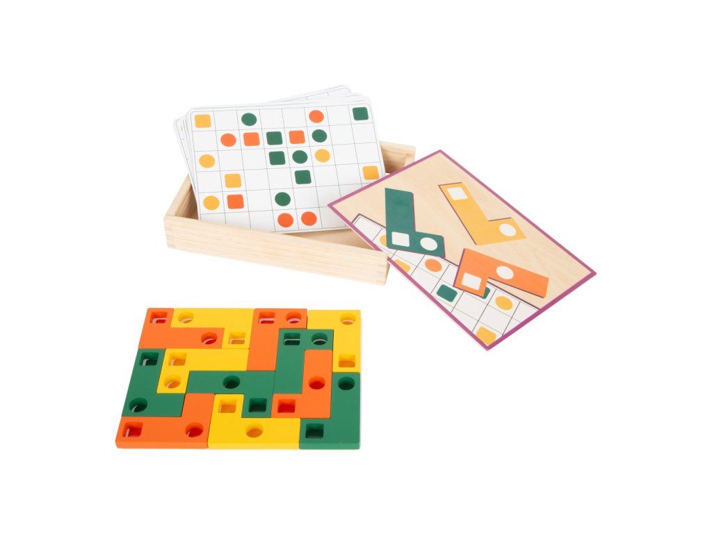 S tímto dřevěným logickým puzzle budete mít za úkol složit 12 dílků na herní kartičky, abyste správně vyplnili všechna místa. Herní dílky v sobě mají různé otvory, kterými je můžete správně uložit na již zmíněné herní kartičky. Toto puzzle trénuje prostorovou představivost, naučí děti poznávat barvy a tvary. Na patnácti kartičkách najdete třicet obrázků rozložení puzzle, podle kterých můžete skládat. Všechny dílky jsou bezpečně uloženy v dřevěné krabičce s posuvným víkem. Tato logická hra se hodí také k Small Foot Logické hře Mozaika (11729), Small Foot Hře logické matematické (11730), Small Foot Vzdělávací hře krmení zvířat (11731). Hlavní vlastnosti: 27 dílků celkempomáhá rozvíjet logiku, jemnou motoriku a představivostodolné dřevěné provedenípraktické baleníDoplňkové parametry